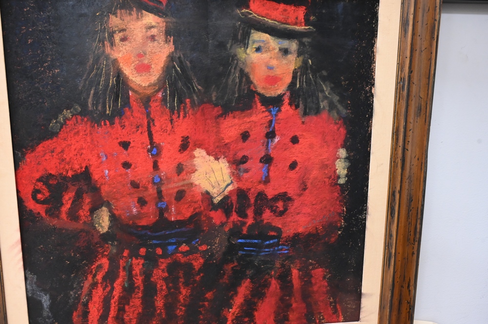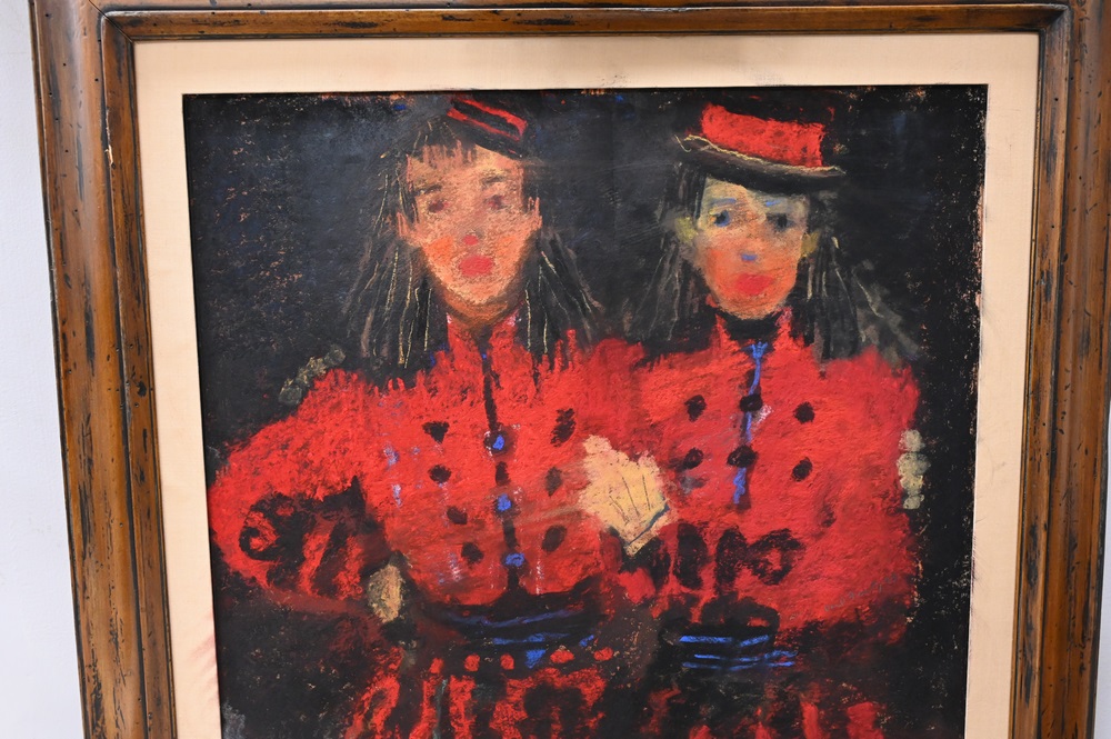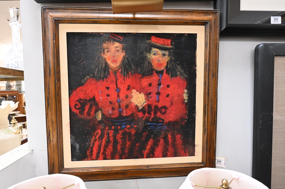 Lot 329: David Fertig (b. 1946), Two Women, pastel on paper, signed and dated middle right David Fertig 93′, Eastlake Gallery Label on verso, 17″ x 17″.