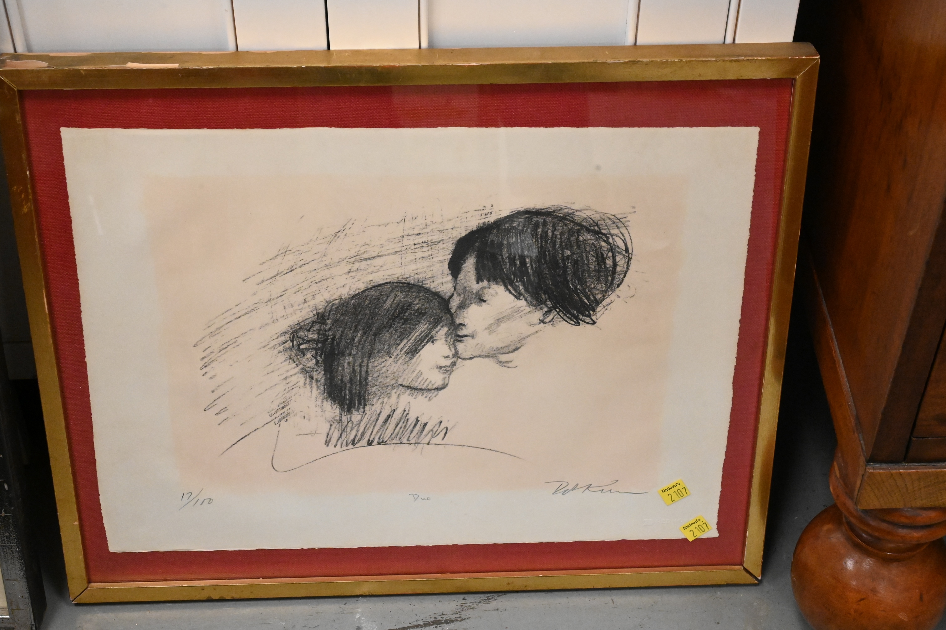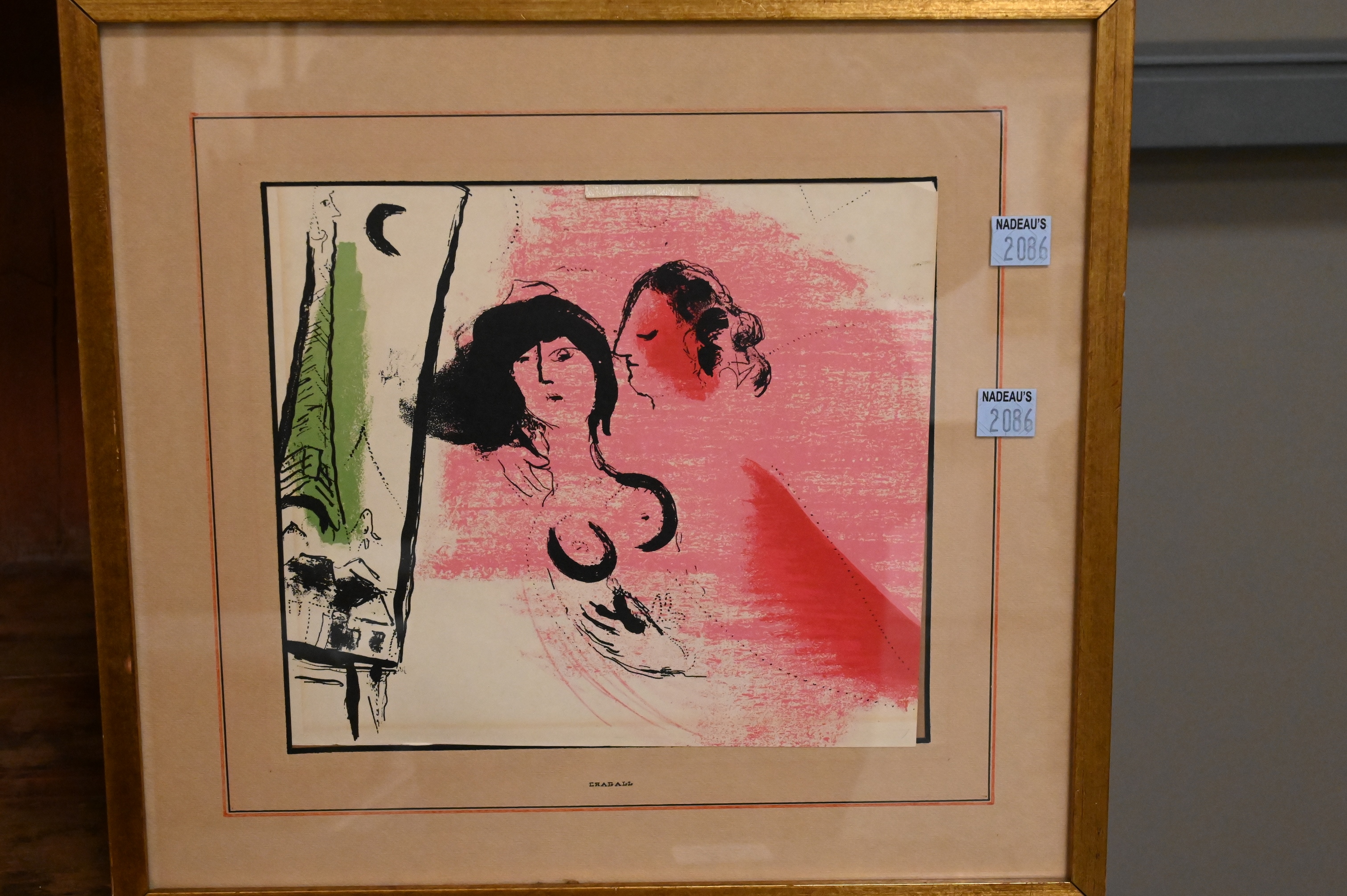 “Lovers and Eiffel Tower-Chagall-Original Lithograph- J.Lassaigne” label on verso