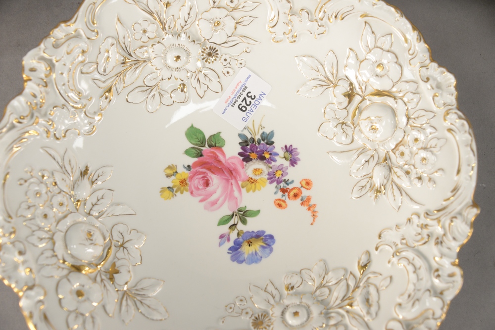 Lot 329: Four Piece Lot of Porcelain, to include R.S. Prussia bowl having rose and gilt decoration; Meissen bowl having floral center and gil…