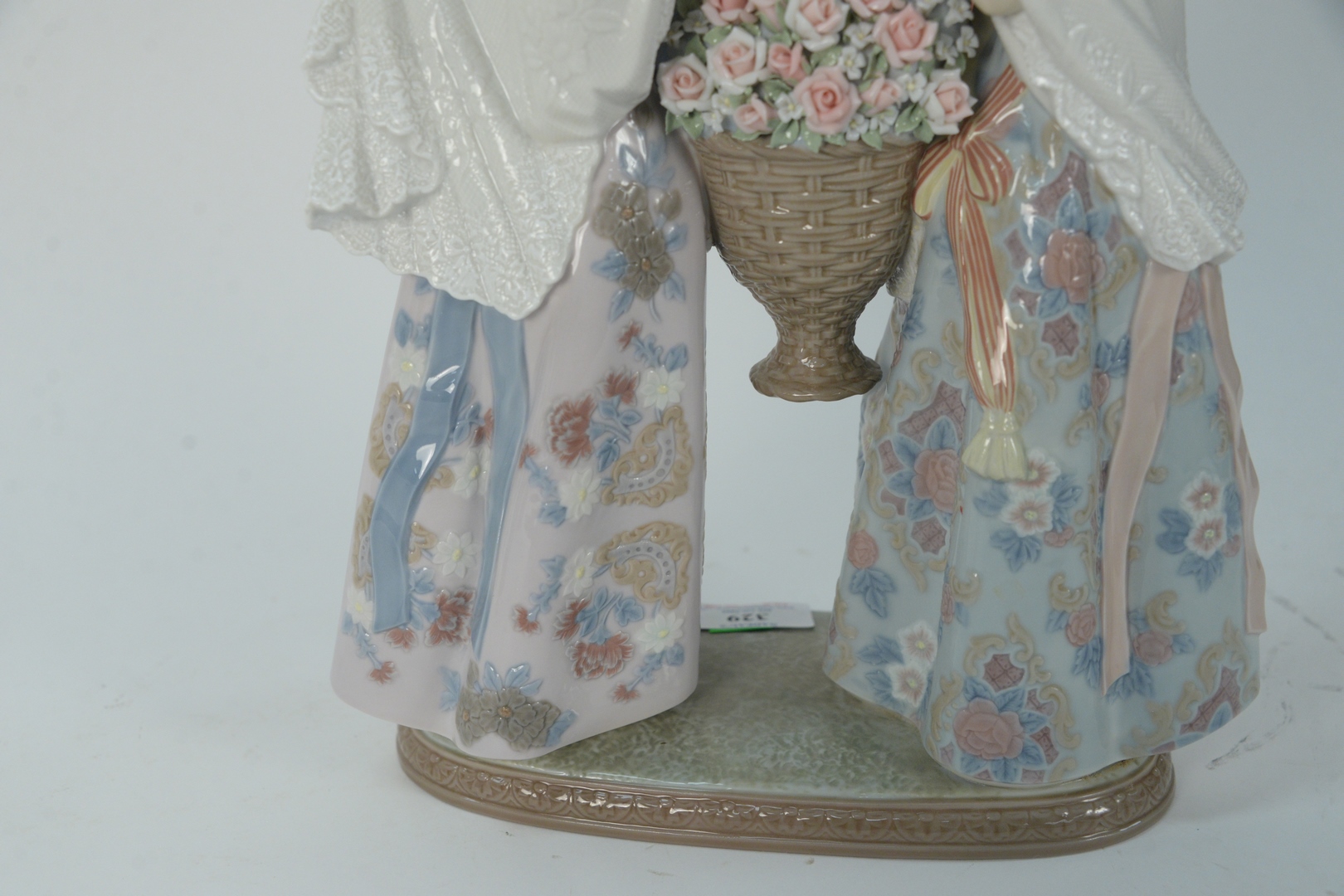 Large Lladro Porcelain Figure, two women holding a flower basket, signed on the underside ‘I. Huertas’ and ‘V. Navarro’, No. 132, height 15 inches.