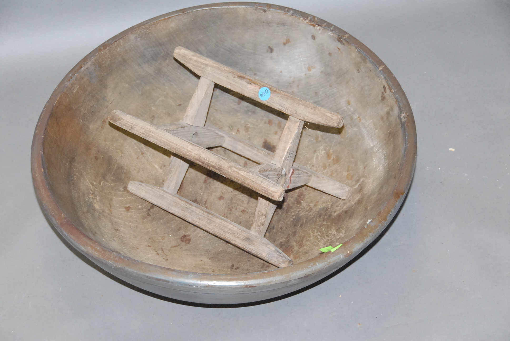 Large primitive gray painted wooden bowl.