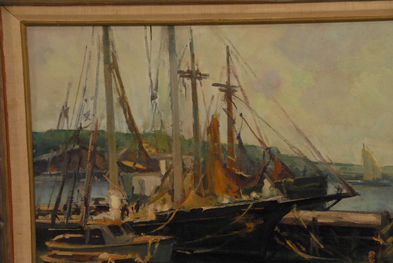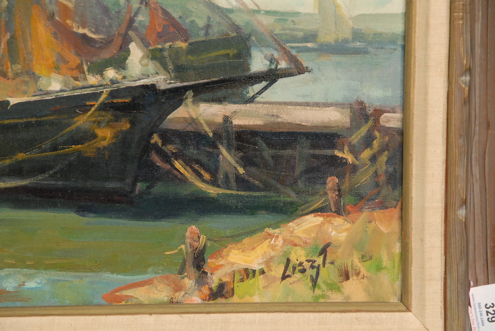 Lot 329: Maria Veronica Liszt 1902-1992 SHIPS IN HARBOR oil on canvas signed lower right Liszt 16 x 20