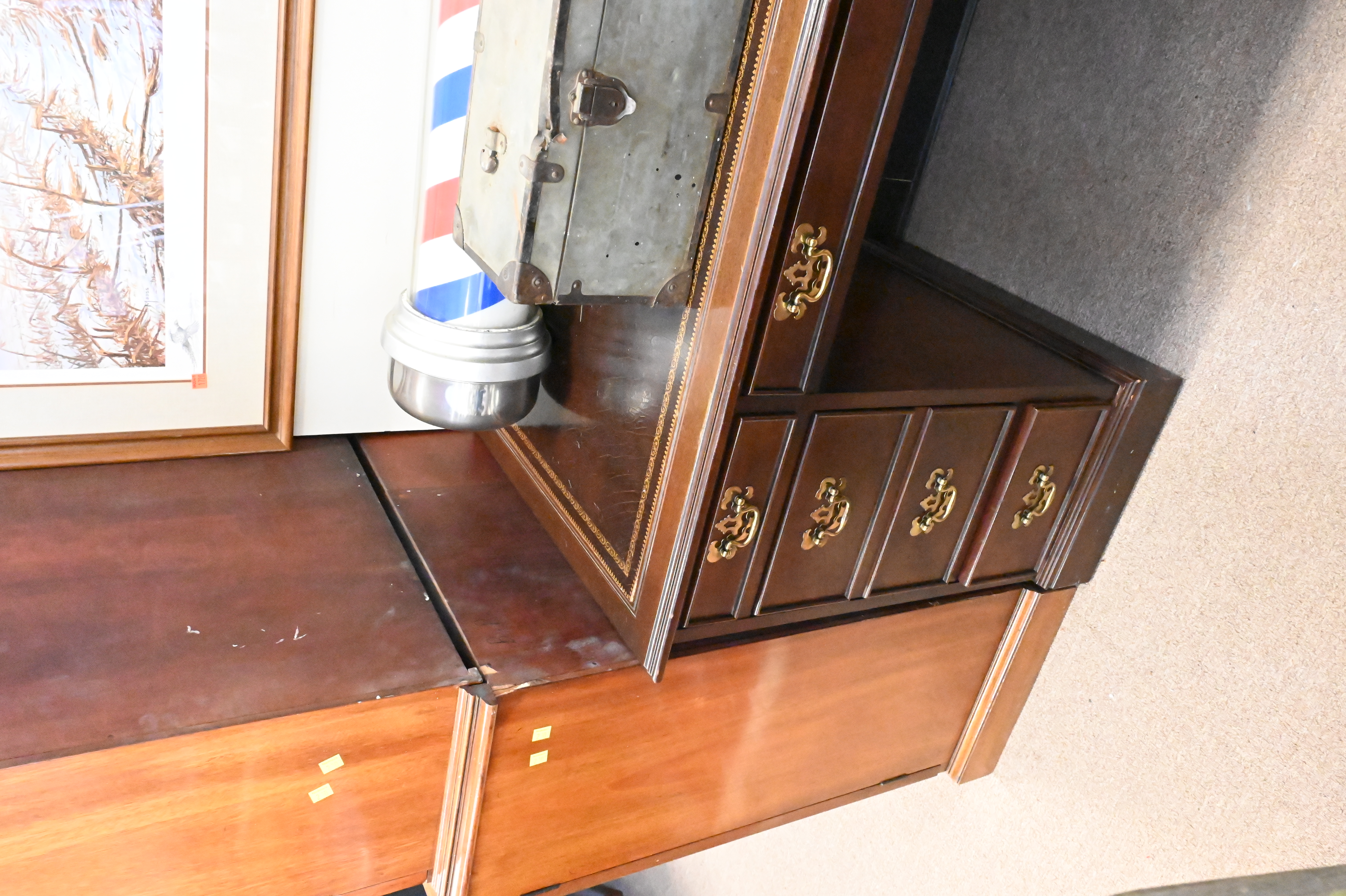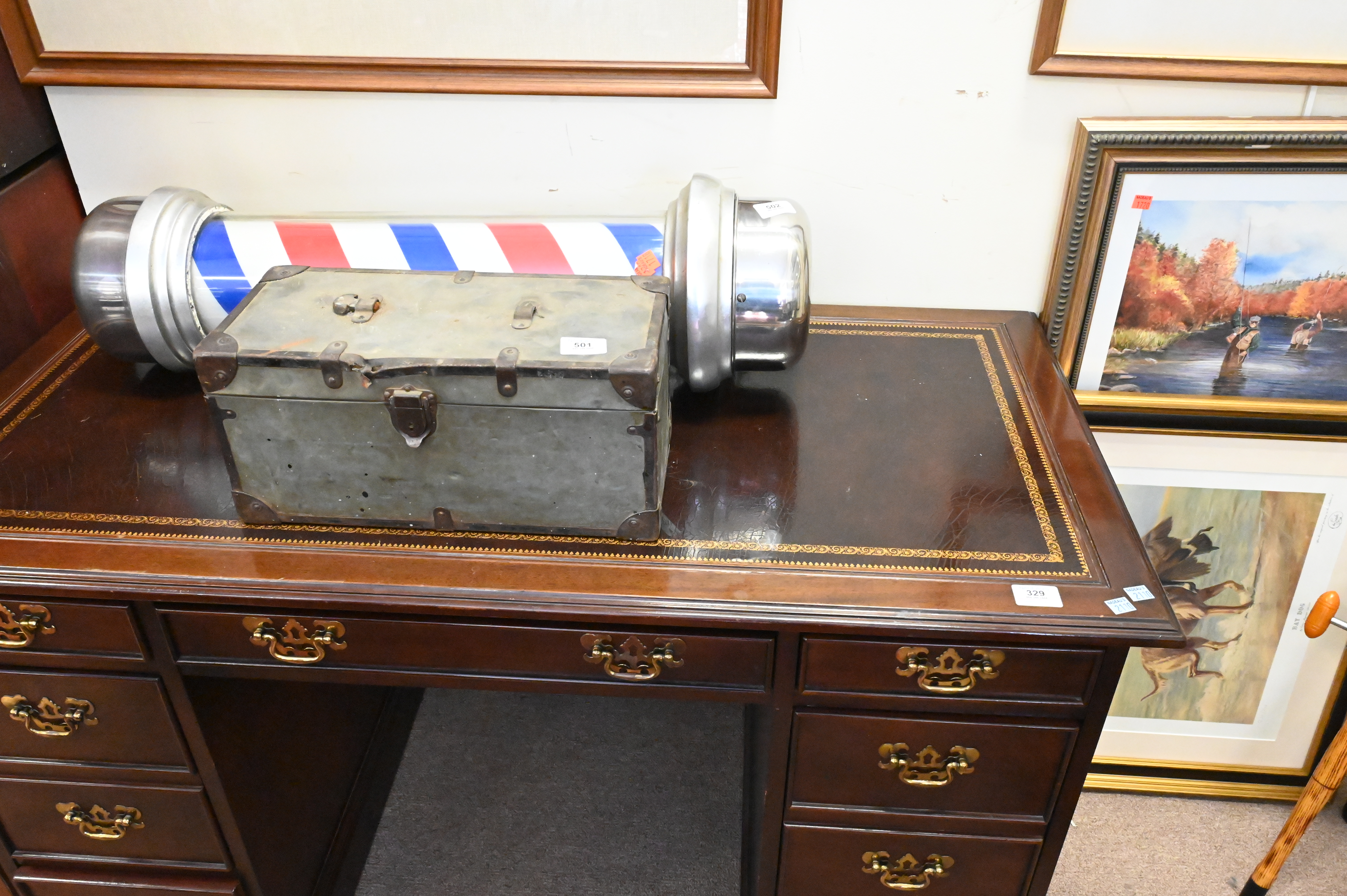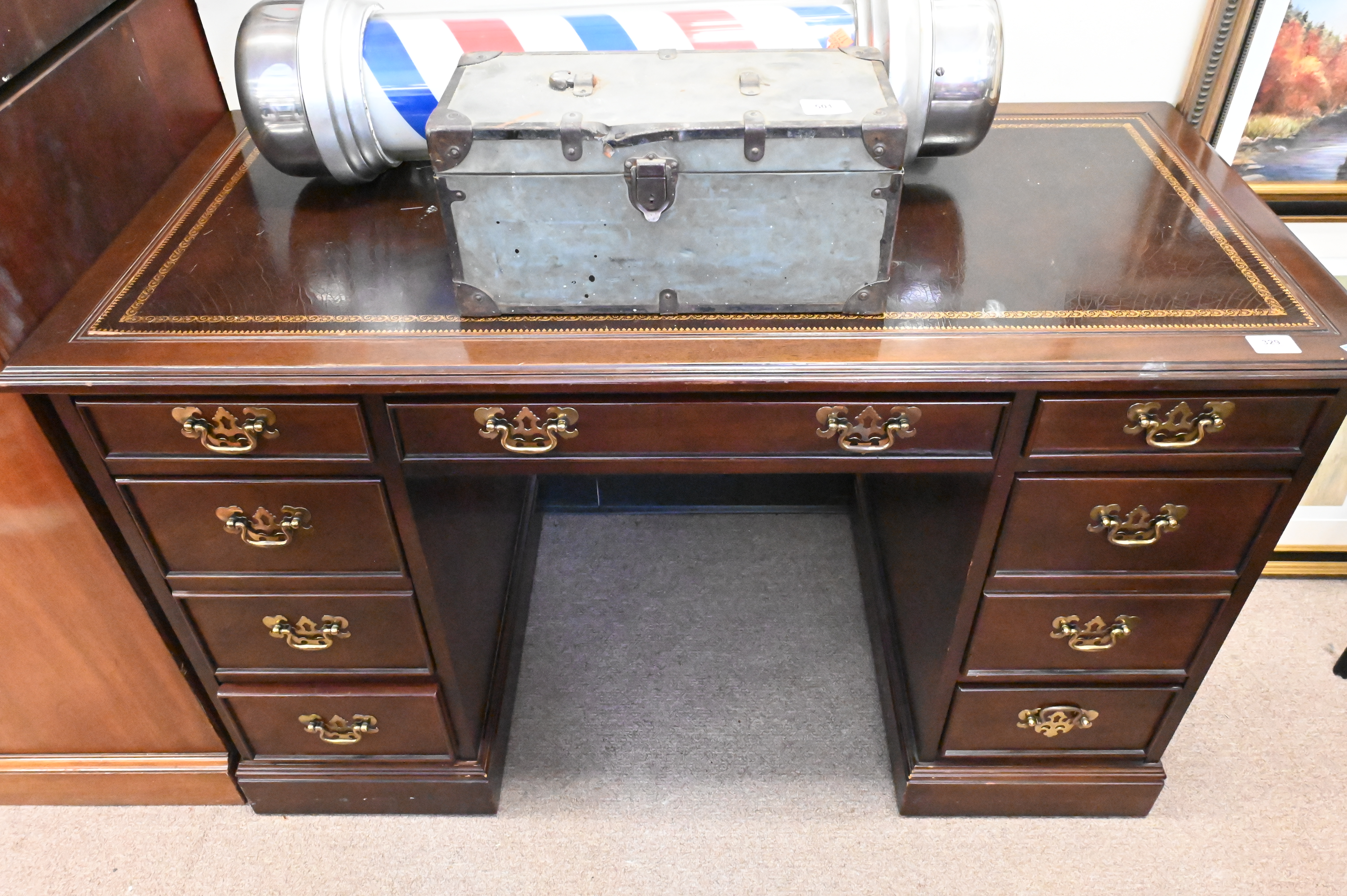 Sligh George IV Style Mahogany Desk, having tooled leather top, height 29 inches, top 23″ x 48″