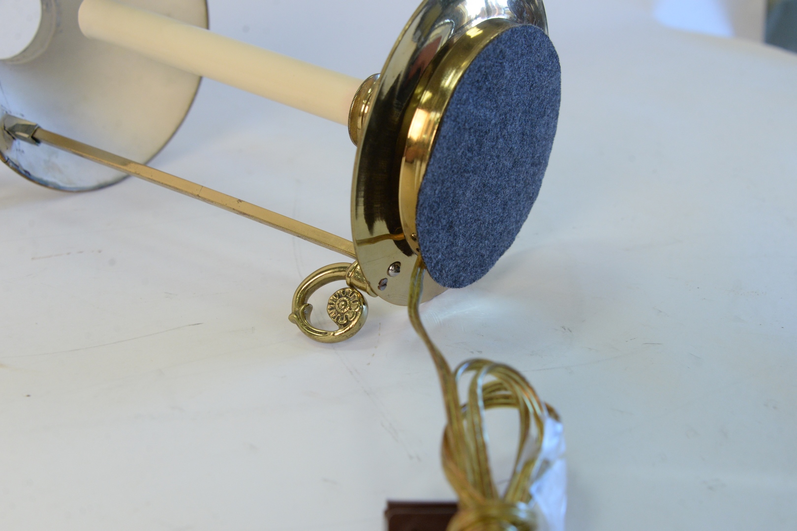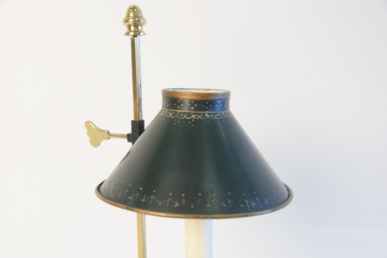 Small Brass Bouillotte Table Lamp, with adjustable tole shade.