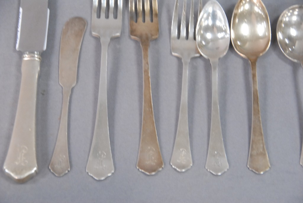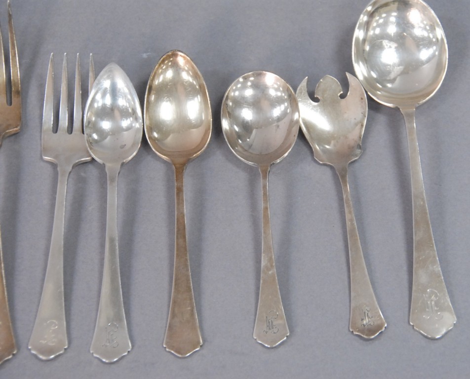 Sterling silver flatware set. 120.4 troy oz. of weighable silver plus fourteen handles.