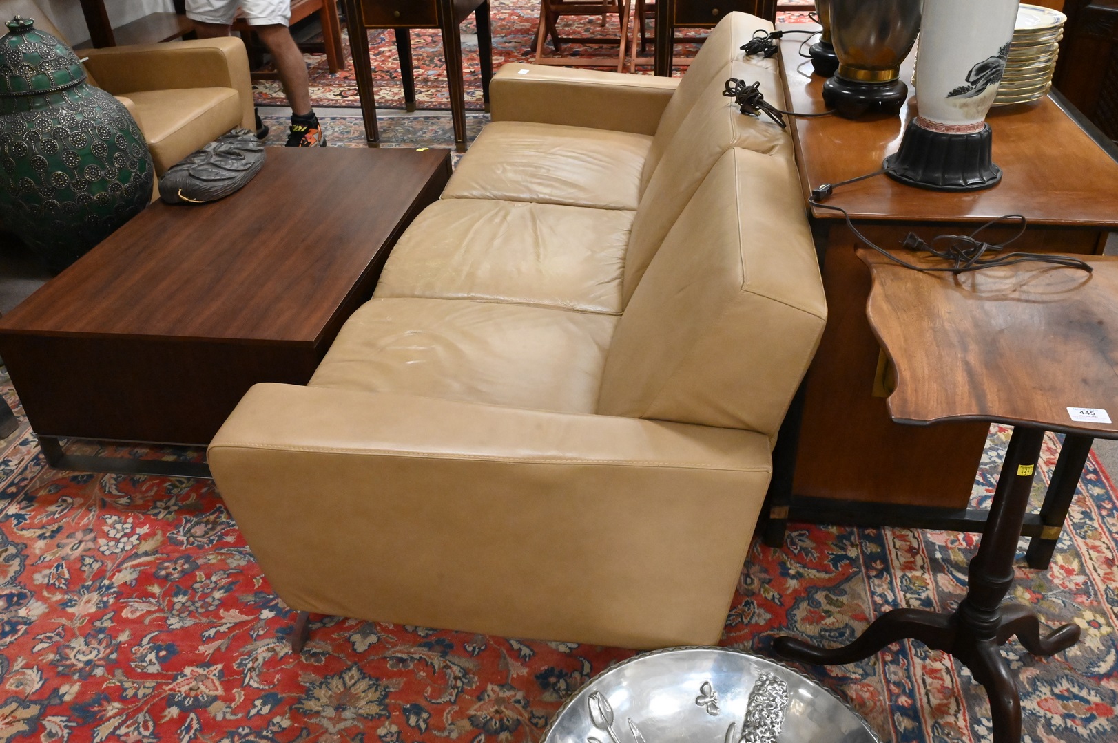 Lot 329: Three Cushion Leather Sofa