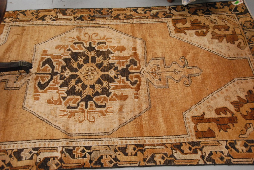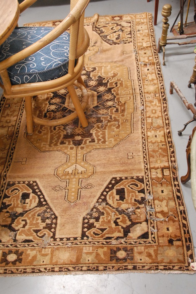 Two almost matching Oushak Oriental rugs, 3’8 x 6’8 one is worn with holes.