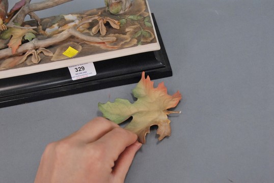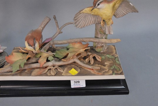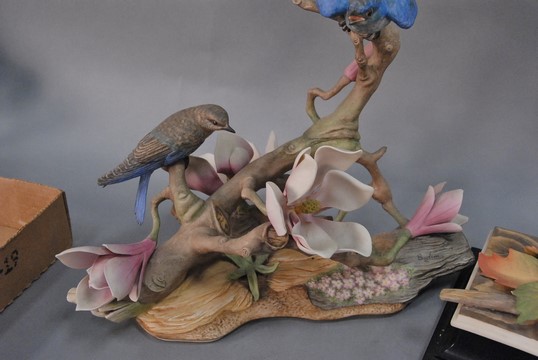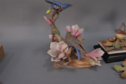 Two Boehm birds, one with loose flower one as is, ht. 10 in. & ht. 12 in.