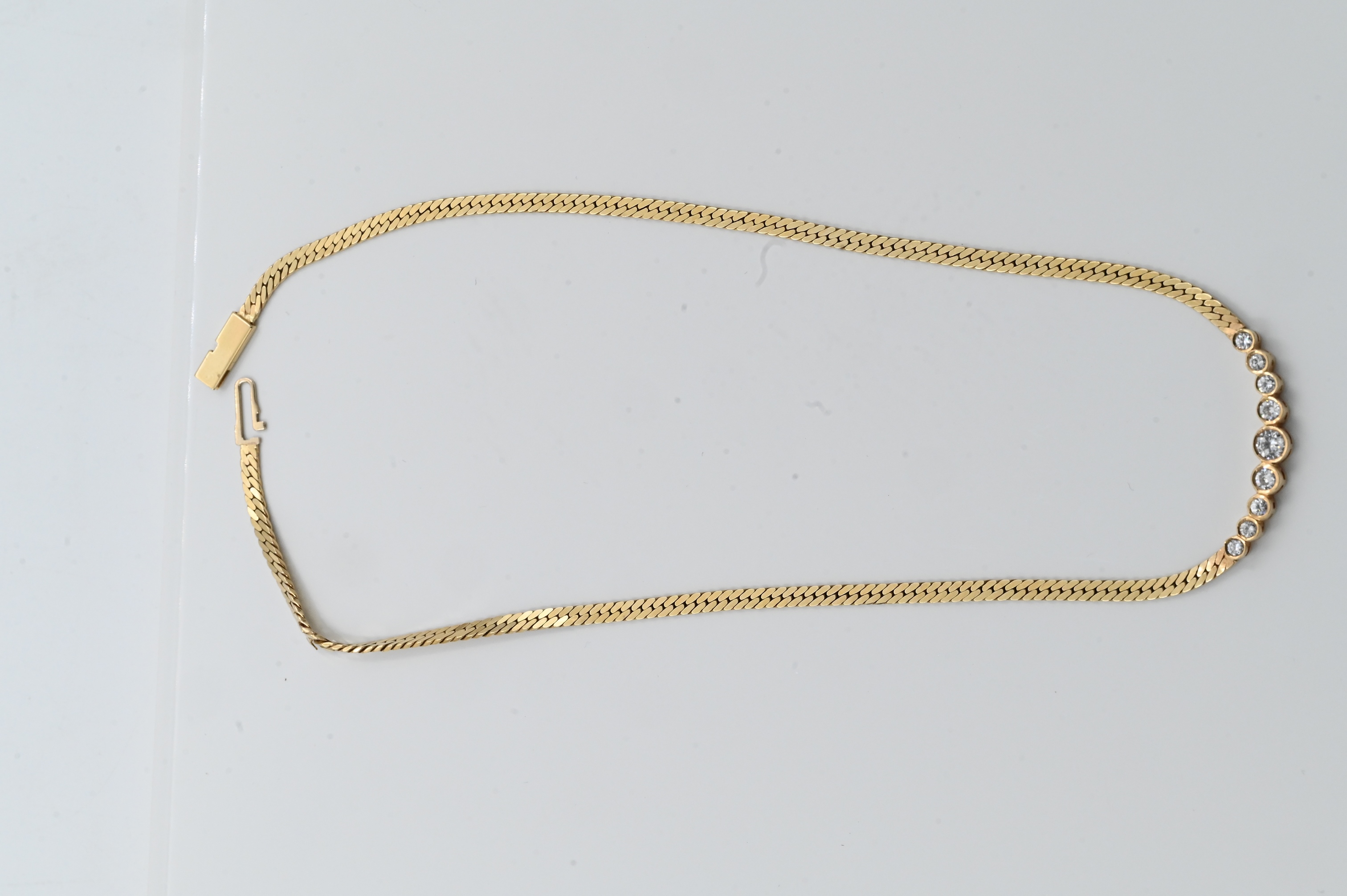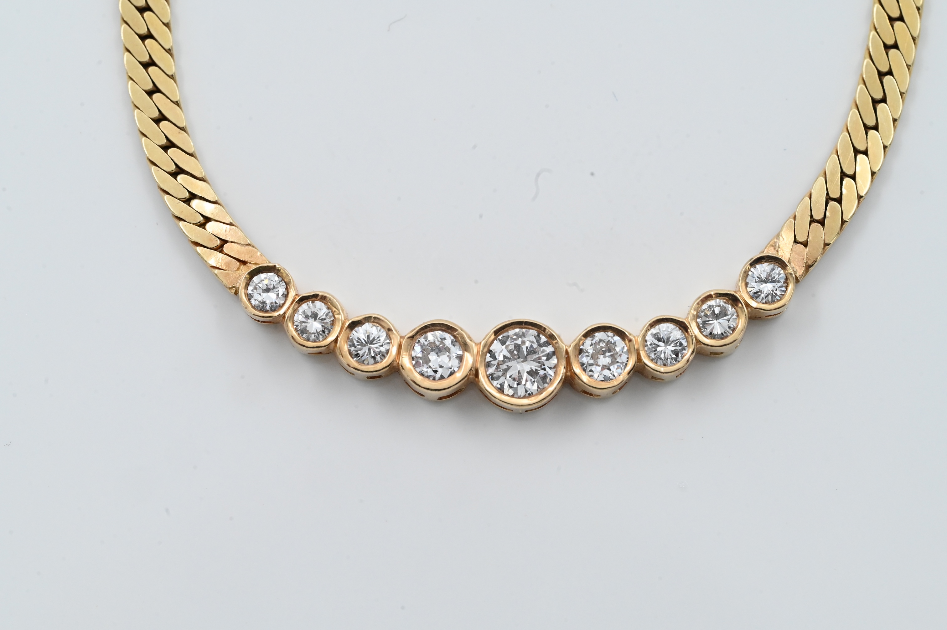 set with 9 diamonds, largest diamond approximately 1/2 carat graduating down to approximately .15 on either side
