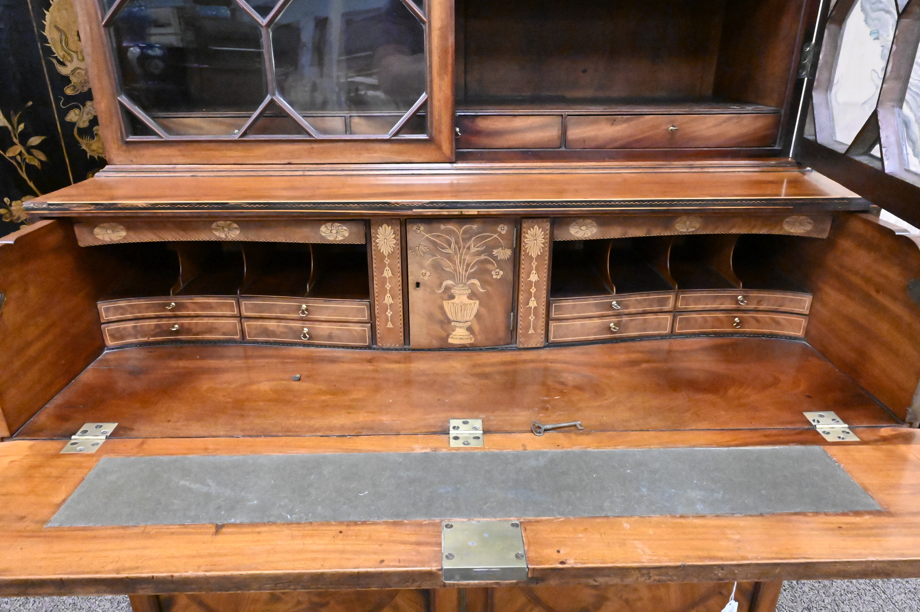 Lot 33: George III Inlaid Mahogany Secretary Bookcase