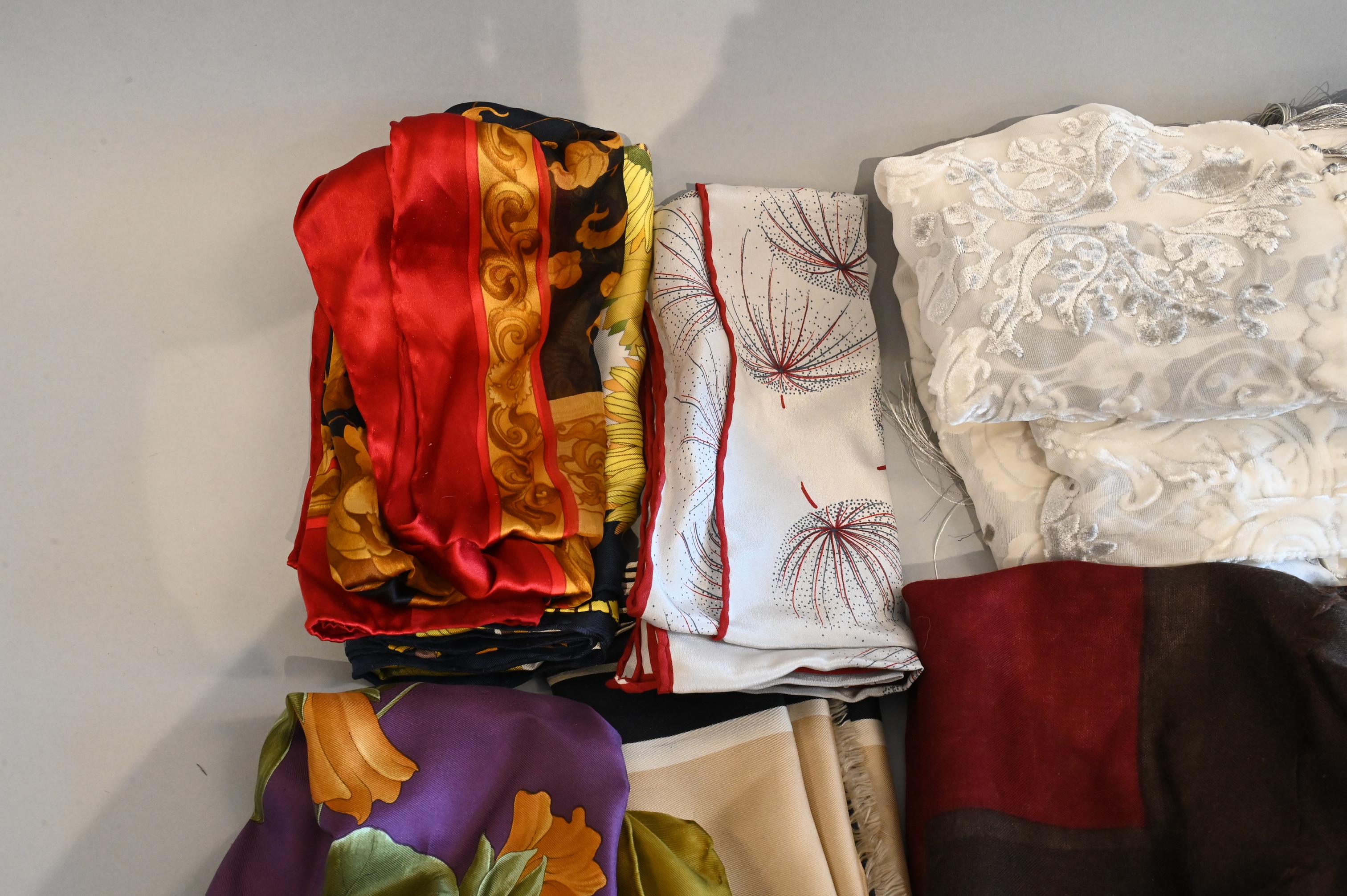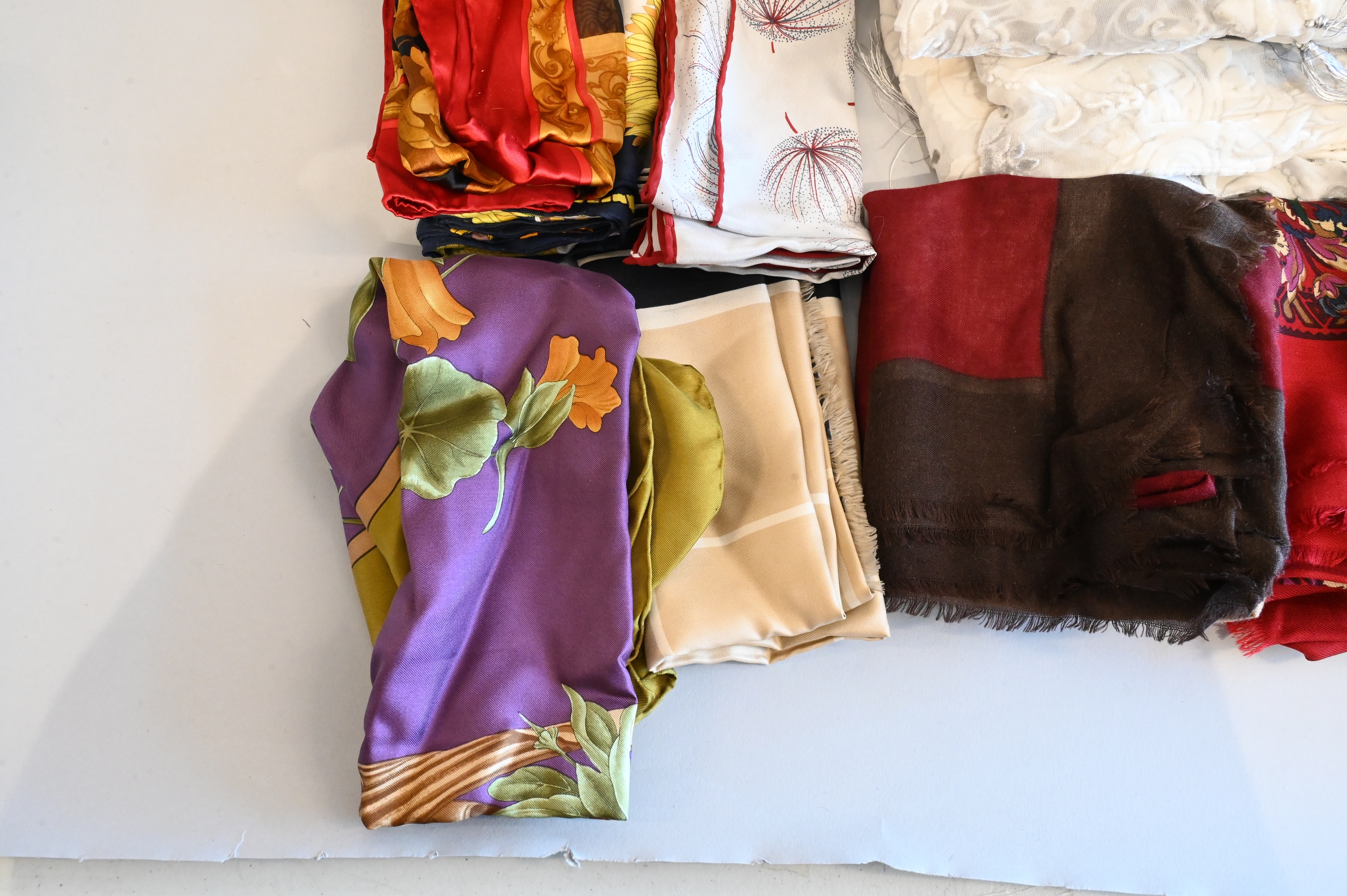 Lot 33: Group of Designer Silk and Cashmere Scarves and Shawls