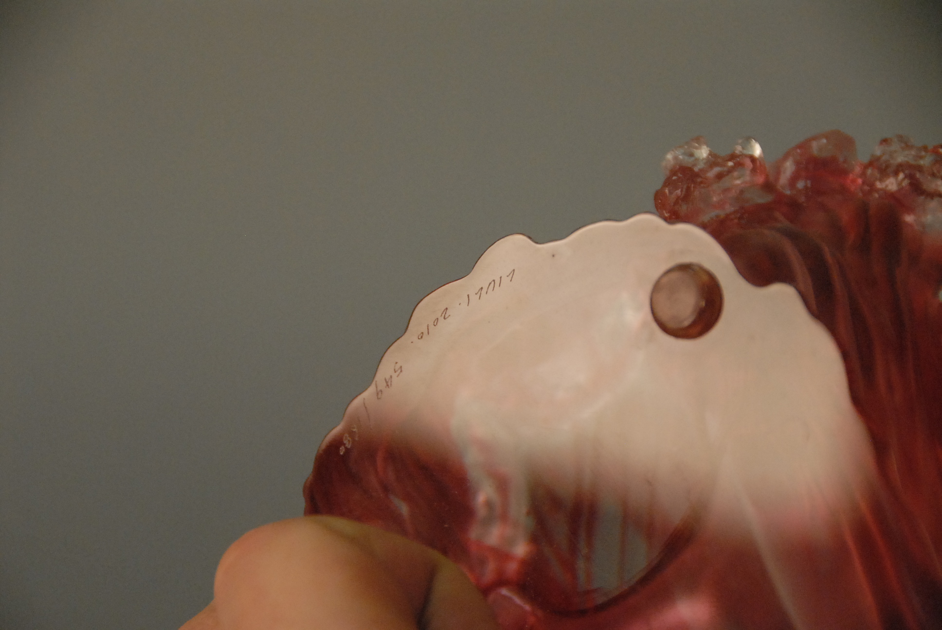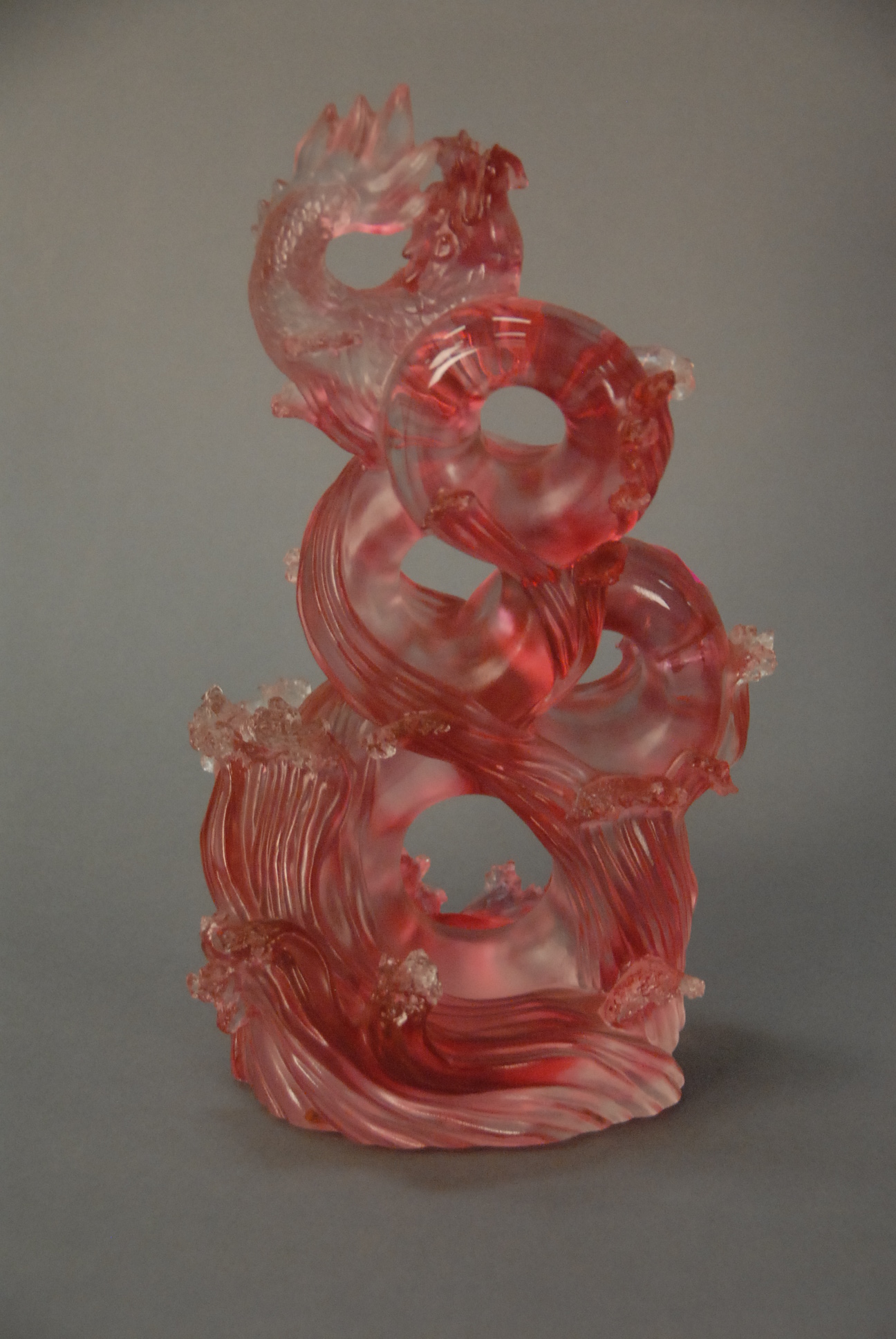 LiuliGongFang art glass jumping coy center piece with fitted box, ht. 11in.