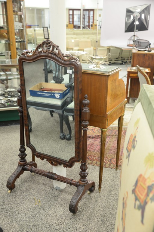 Lot 33: Mahogany cheval mirror. ht. 56in., wd. 29in.