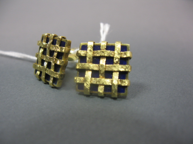 Pair of 18 K gold man’s cufflinks, set with lapis.