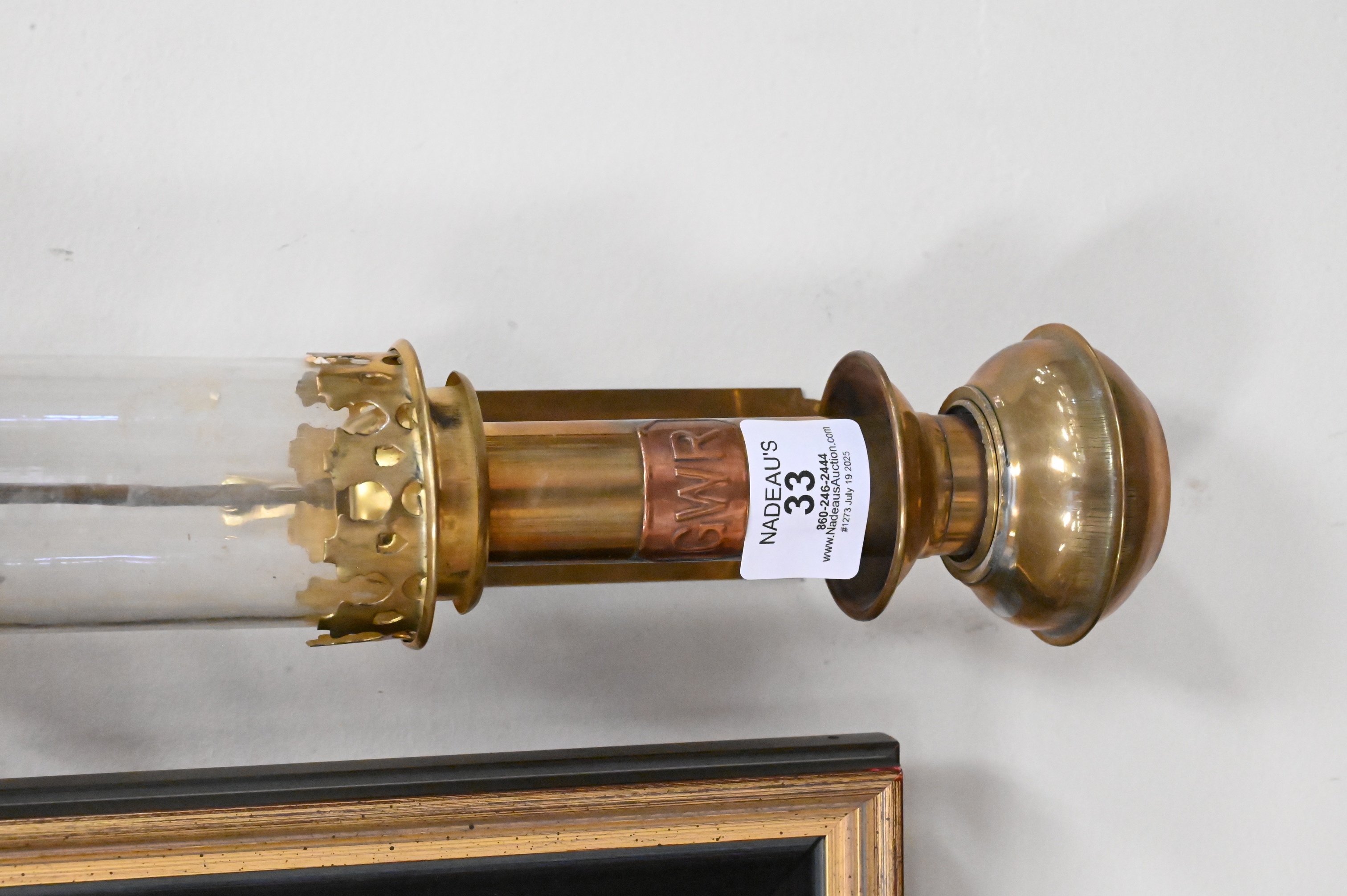 brass and copper, marked G.W.R. with pierced cover, and pointed finial