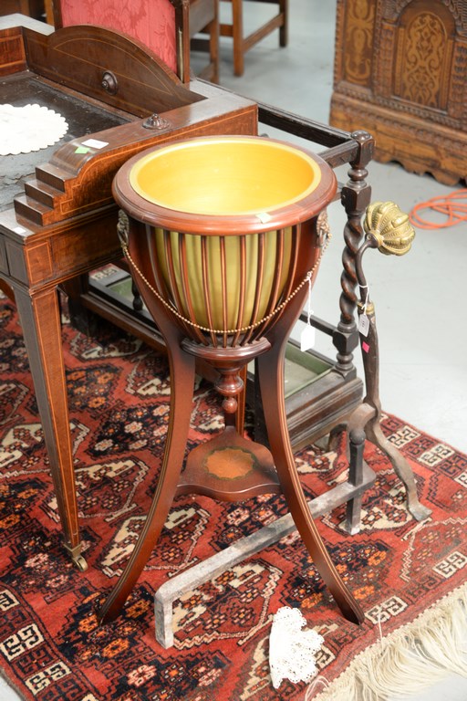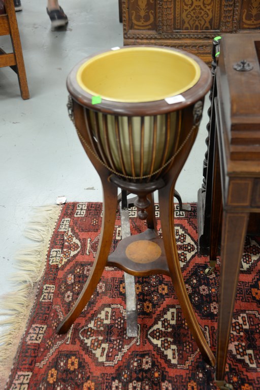 Pair of mahogany inlaid fern stands. ht. 33 in.