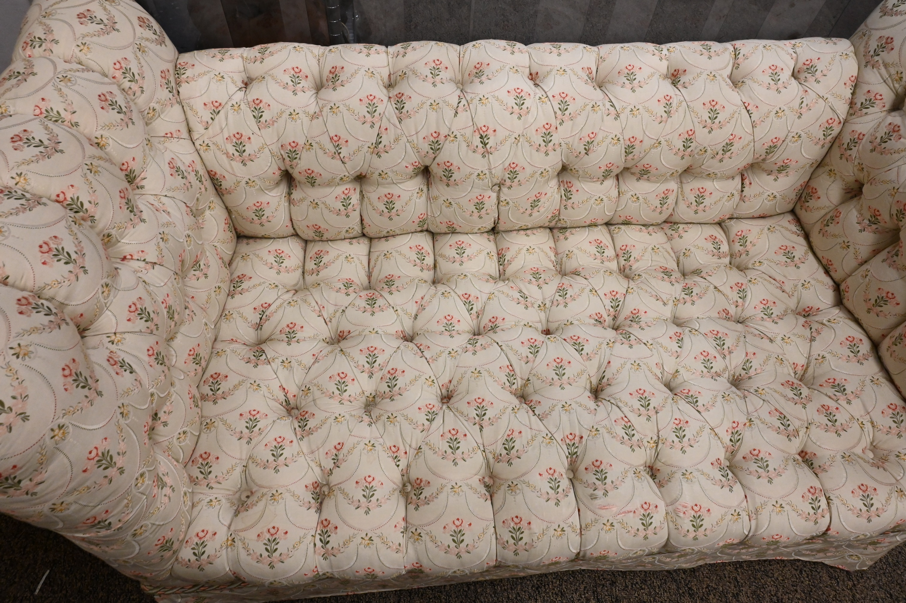 Lot 33: Pair of Tufted and Custom Upholstered Loveseats