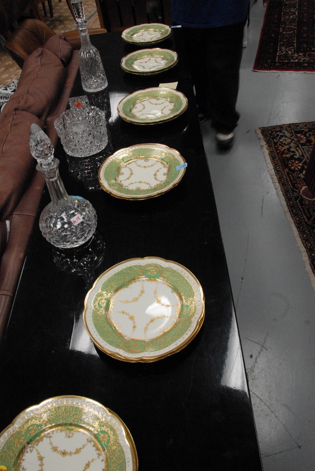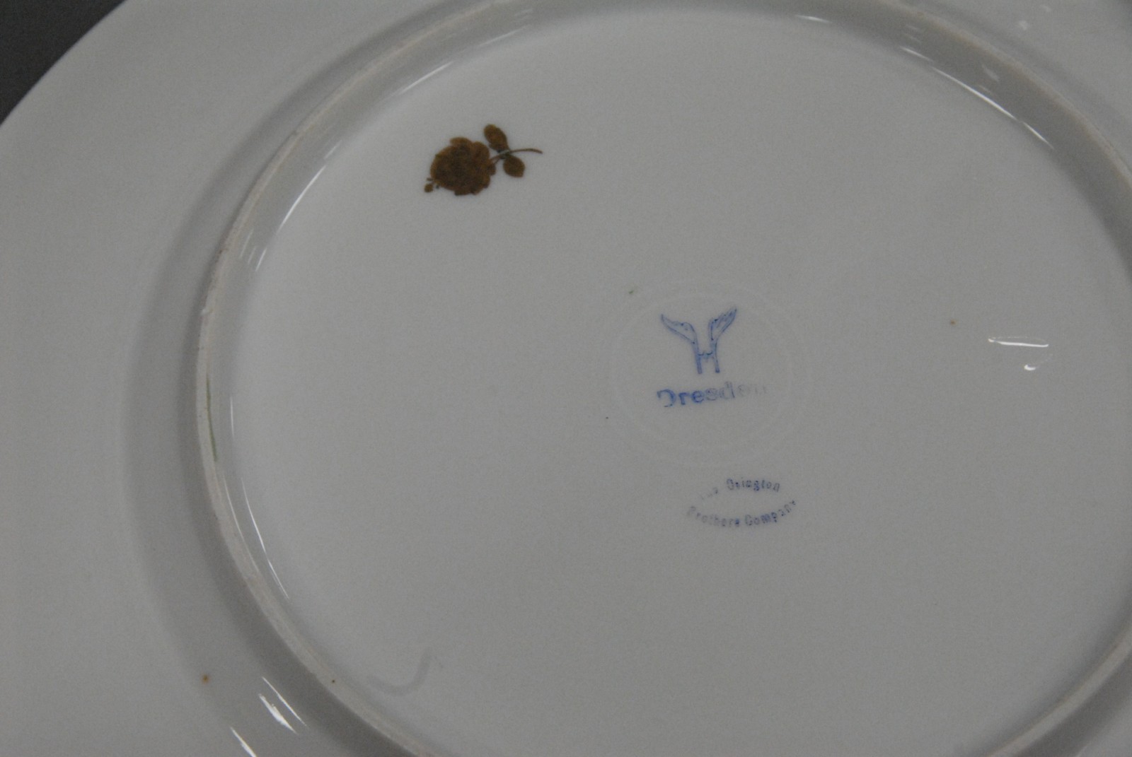 Set of twelve Dresden plates with high relief gold decorations, some wear