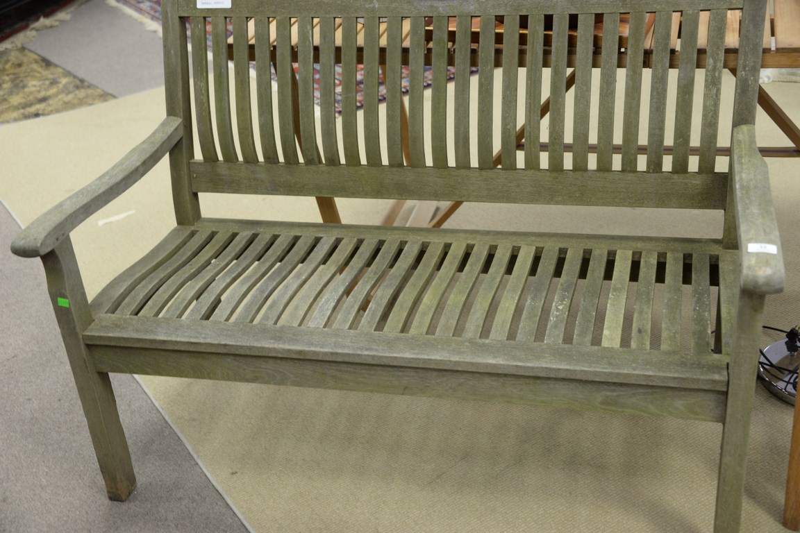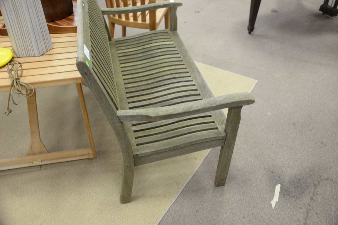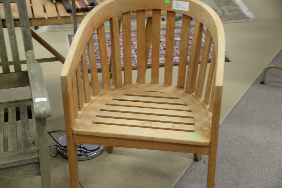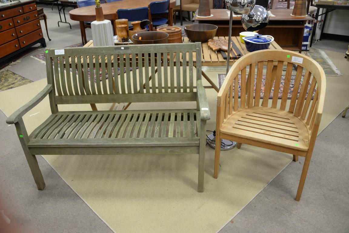 Two piece teak lot including bench wd. 49 in. and a barrel back chair.