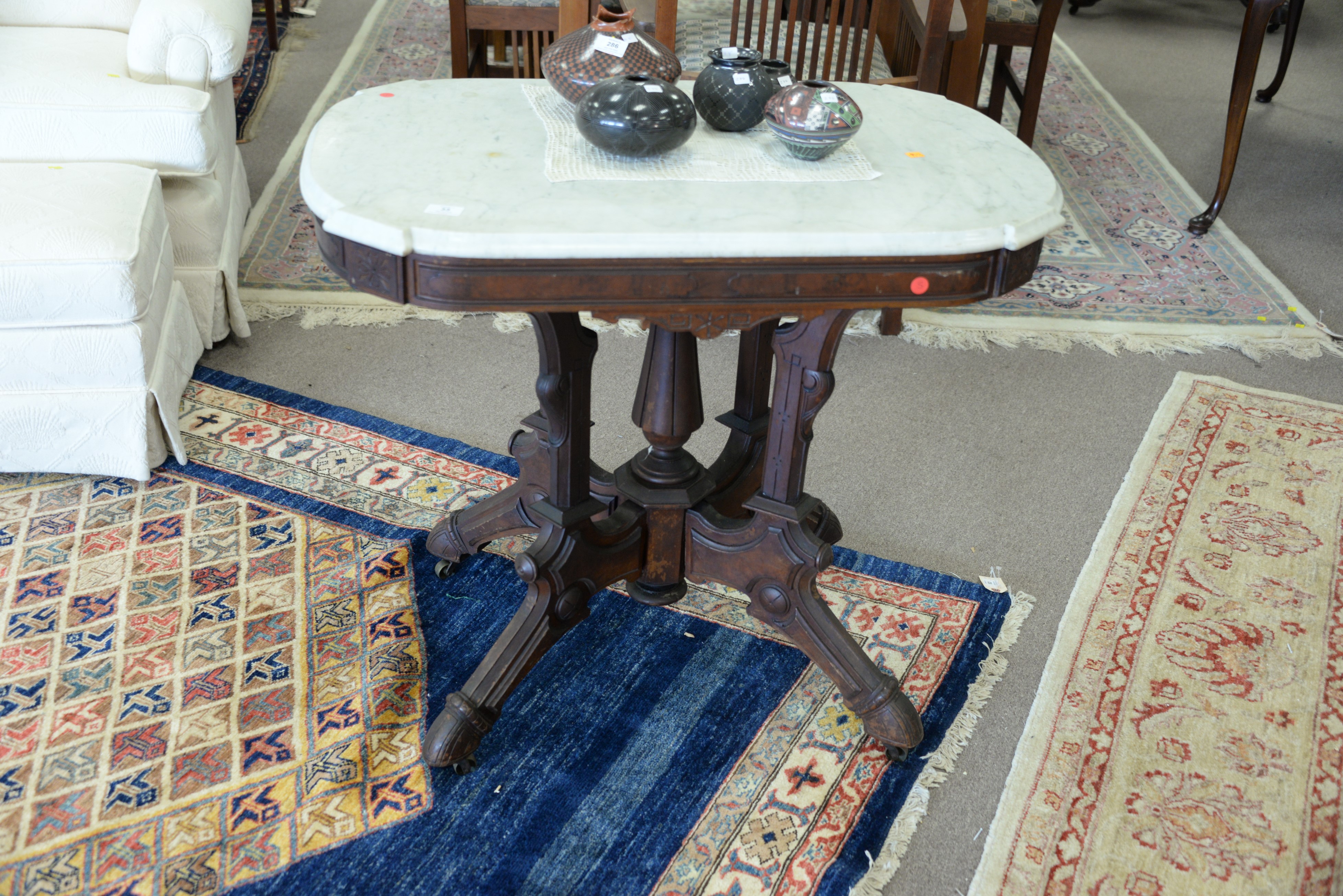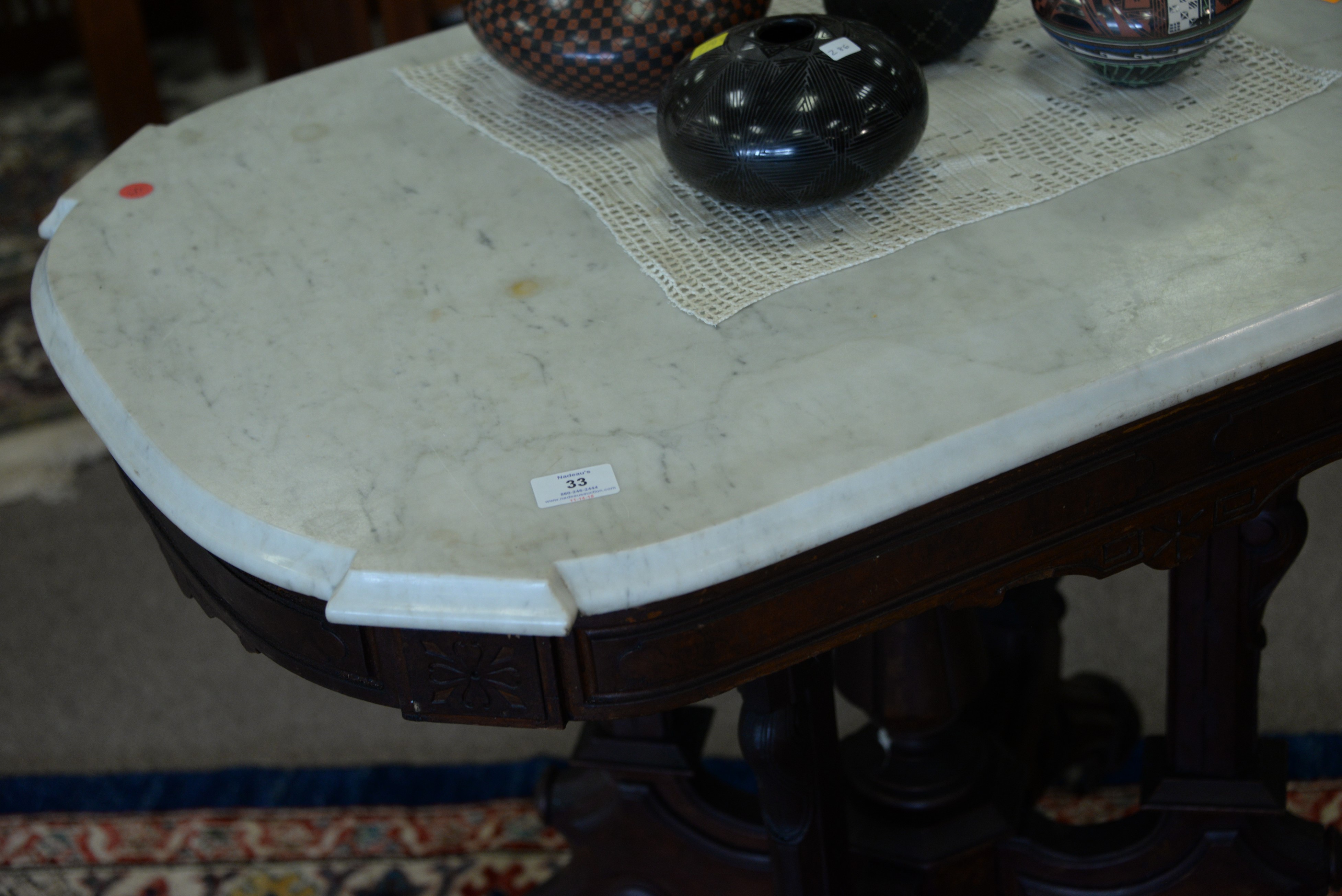Victorian marble top table with shaped top. top: 23 x 35
