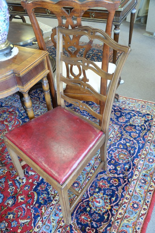 A. H. Davenport Set of eight Chippendale style dining chairs with ribbon backs, six side and two arm, marked A. H. Davenport Co., Boston New York, as is, sun faded.