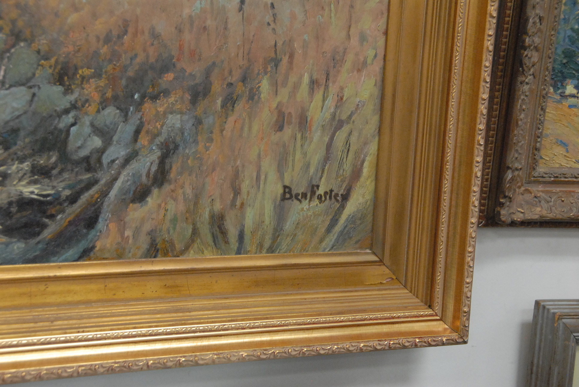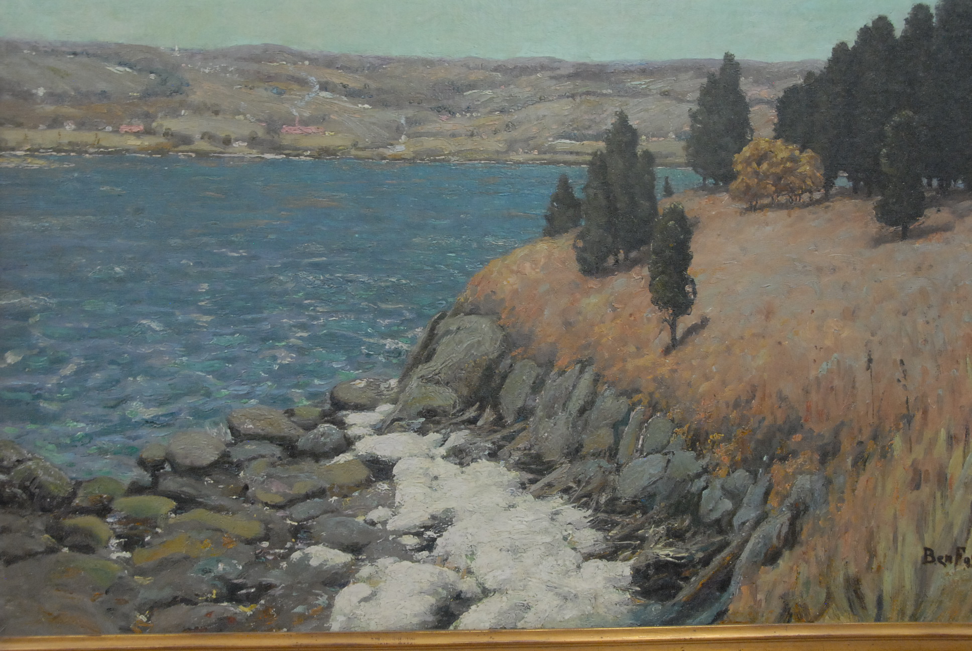 Ben Foster 1852-1926 MYSTIC ALONG THE CONNECTICUT RIVER oil on canvas signed lower right Ben Foster restretched and relined 35 1/2 x 40 1/2