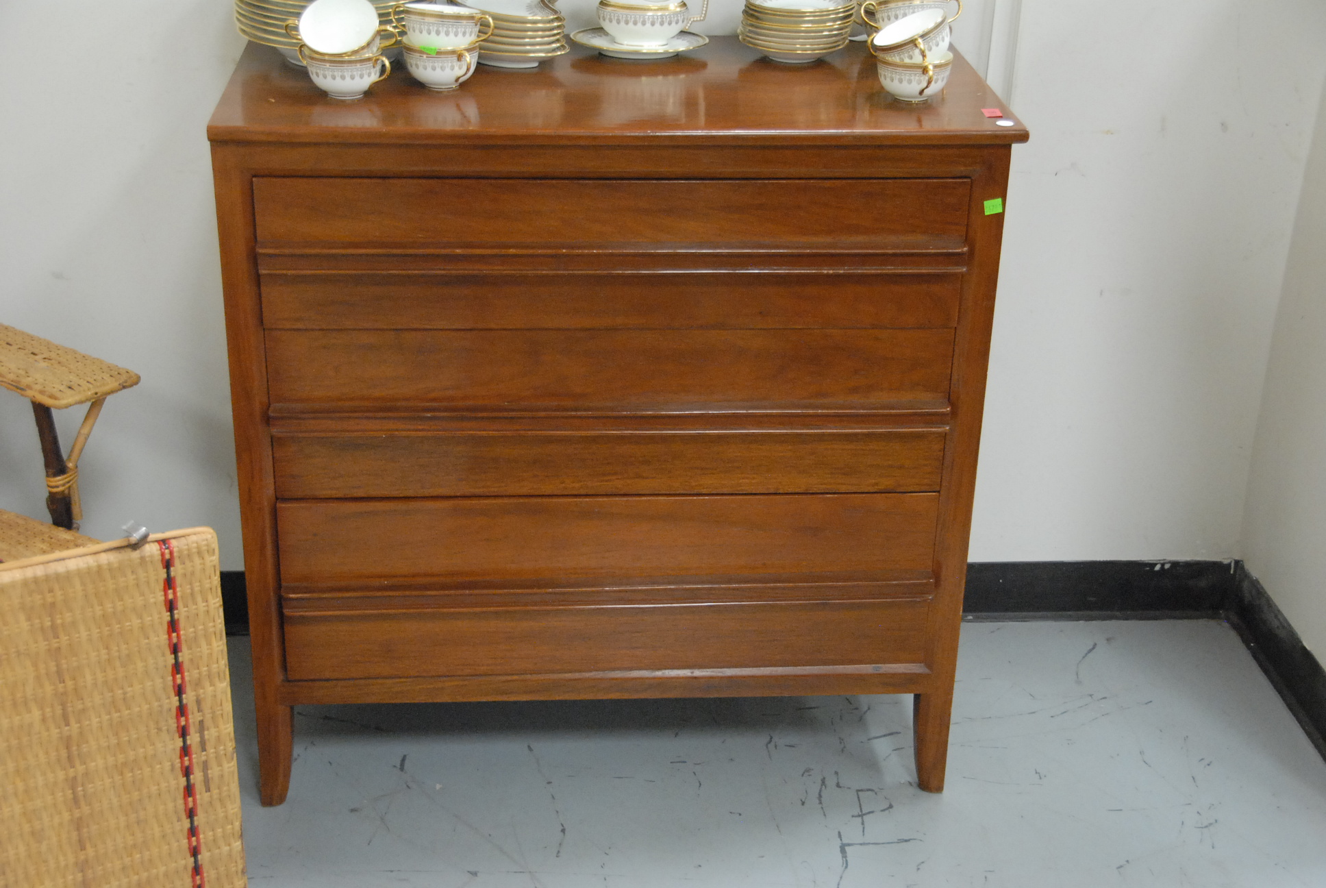 Bench made Mid-Century three drawer solid mahogany low chest, ht. 36in. wd. 35in.