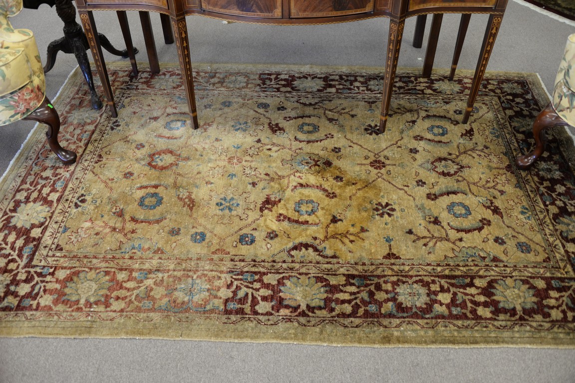 Contemporary Oriental area rug wear. 5’5 x 8′.