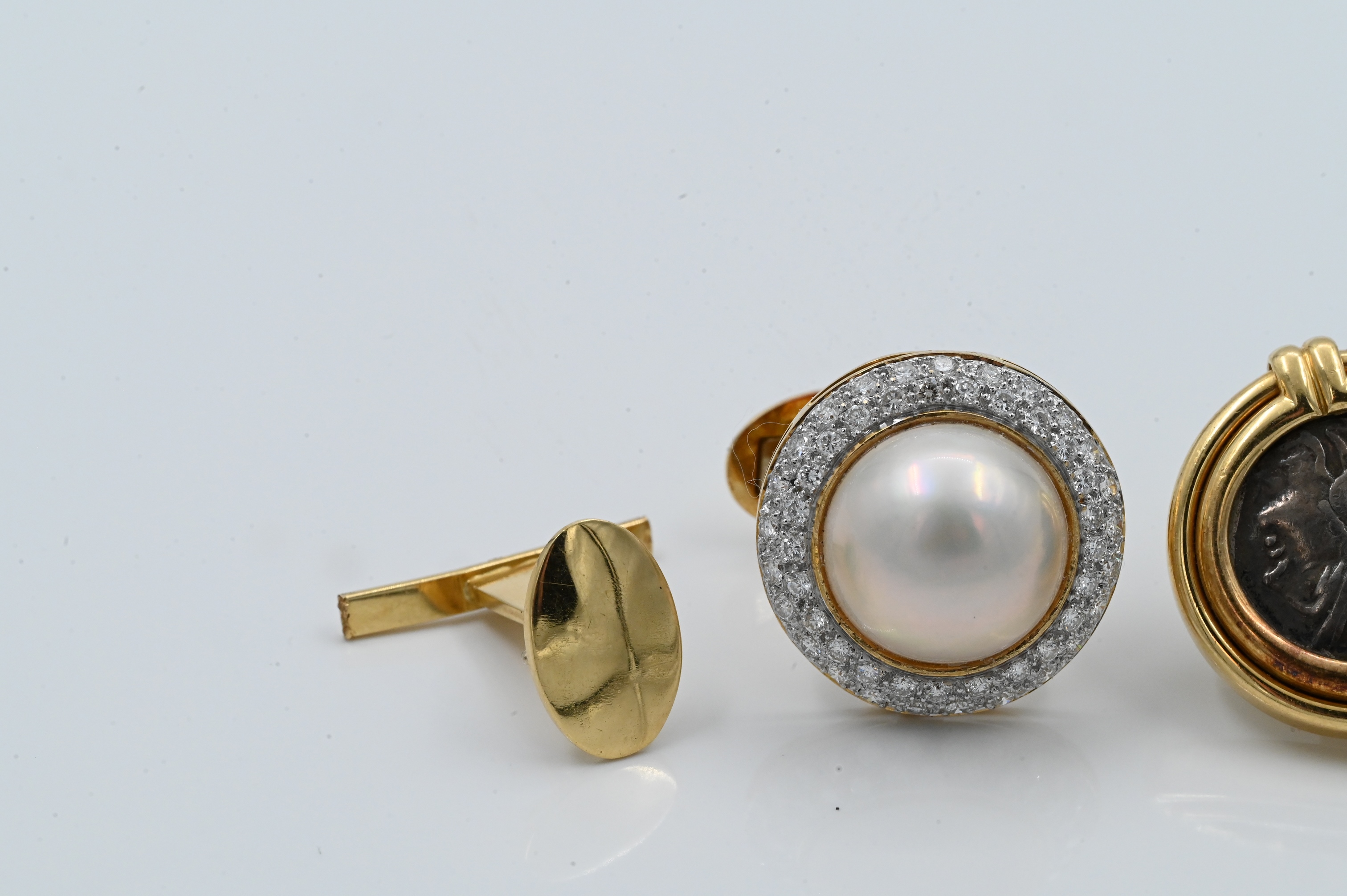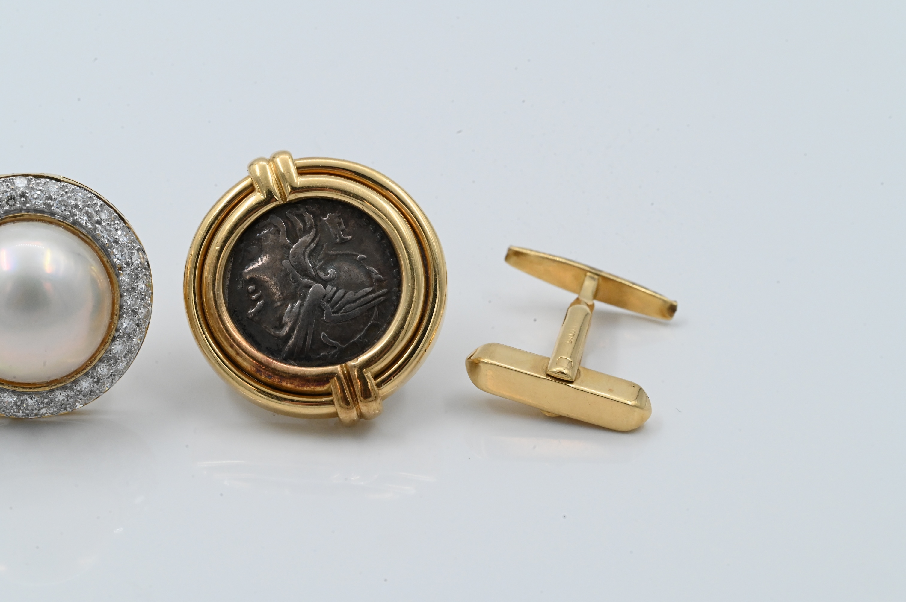 one Bulgari 18K yellow gold with coin, one 18K yellow gold with pearl surrounded by diamonds,
