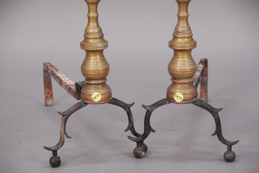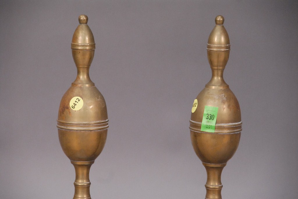 Pair of Federal brass double lemon top andirons, ht. 21in.