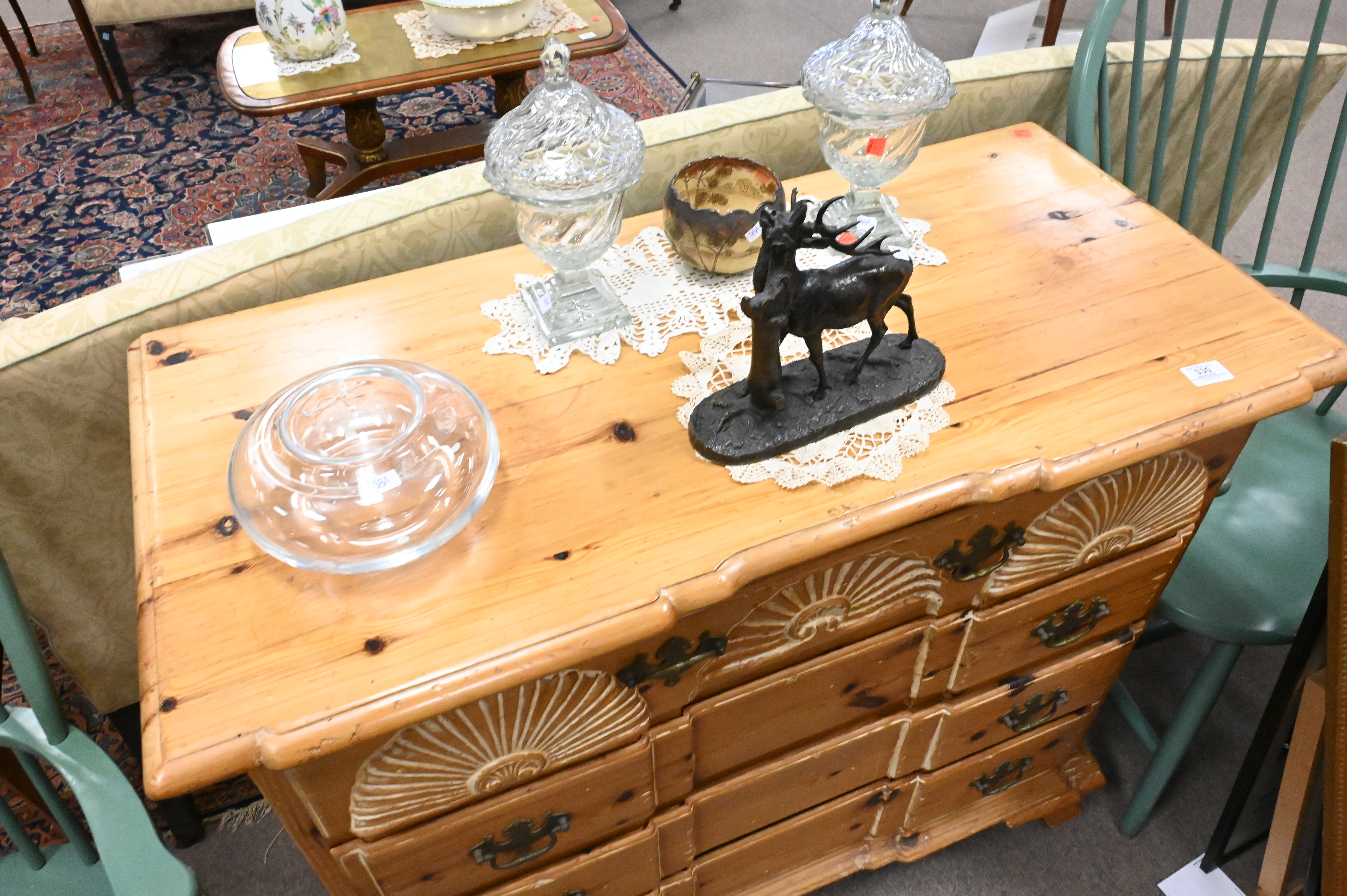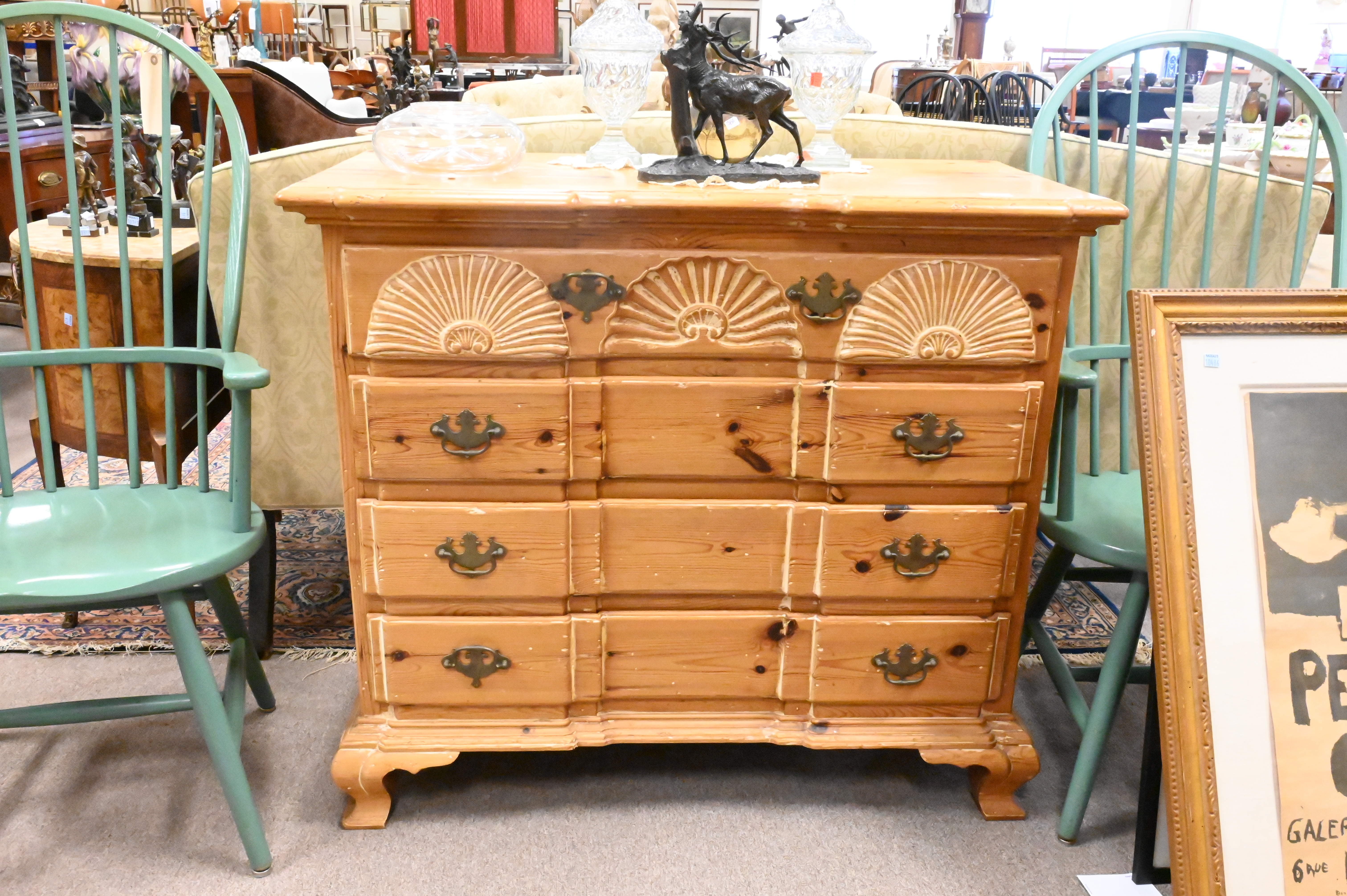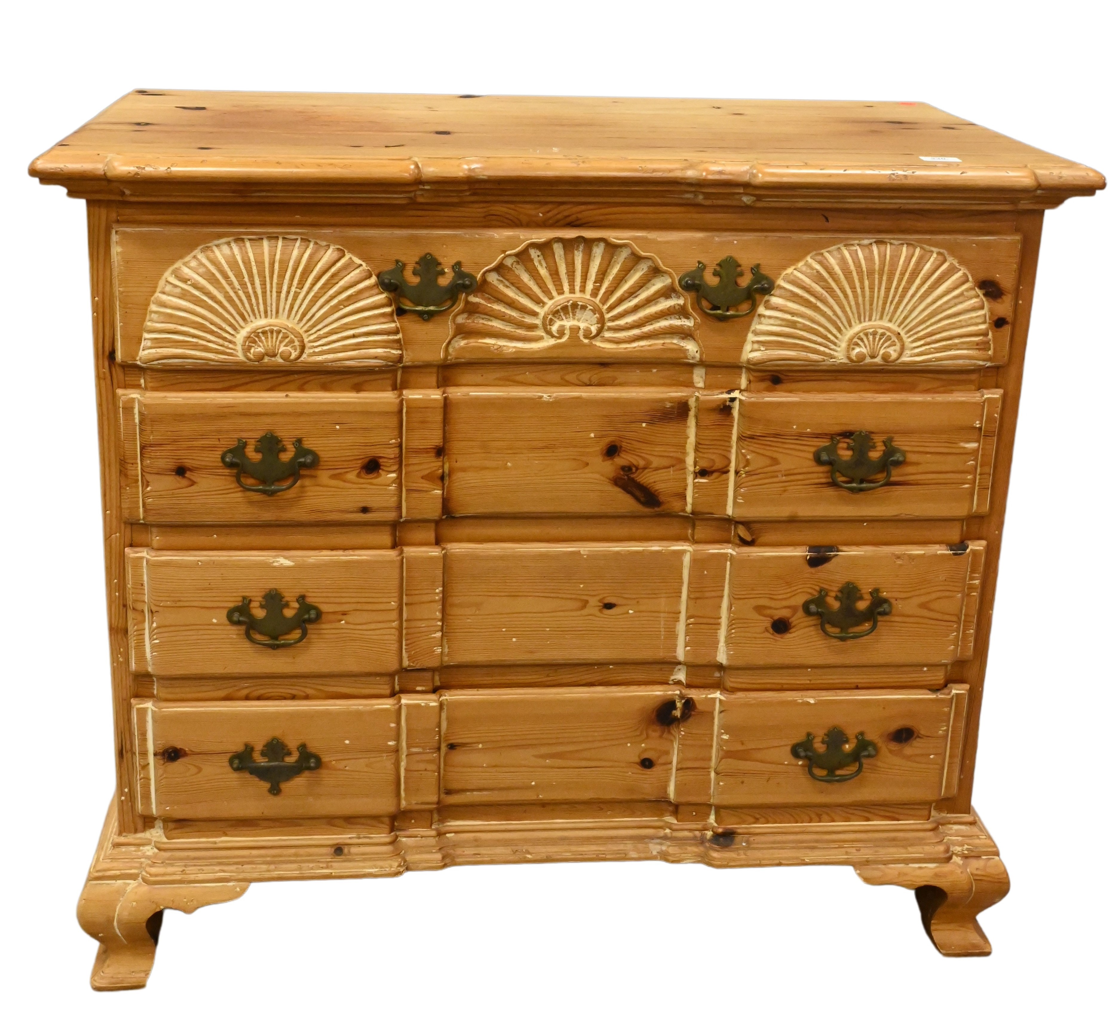 Lot 330: Pine Block and Shell Carved Four Drawer Chest