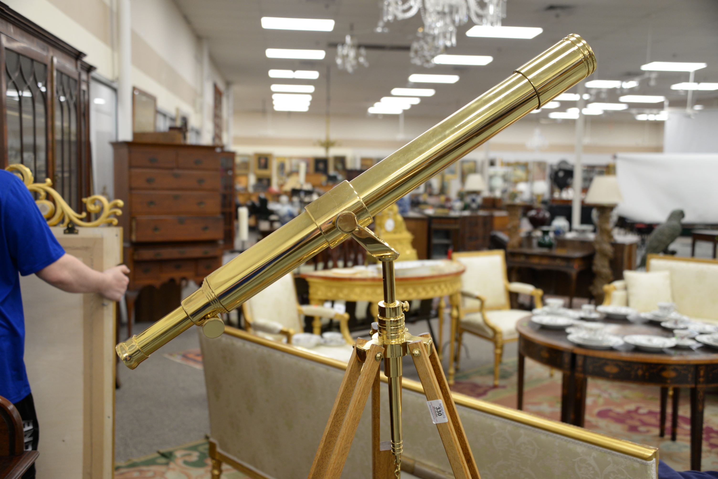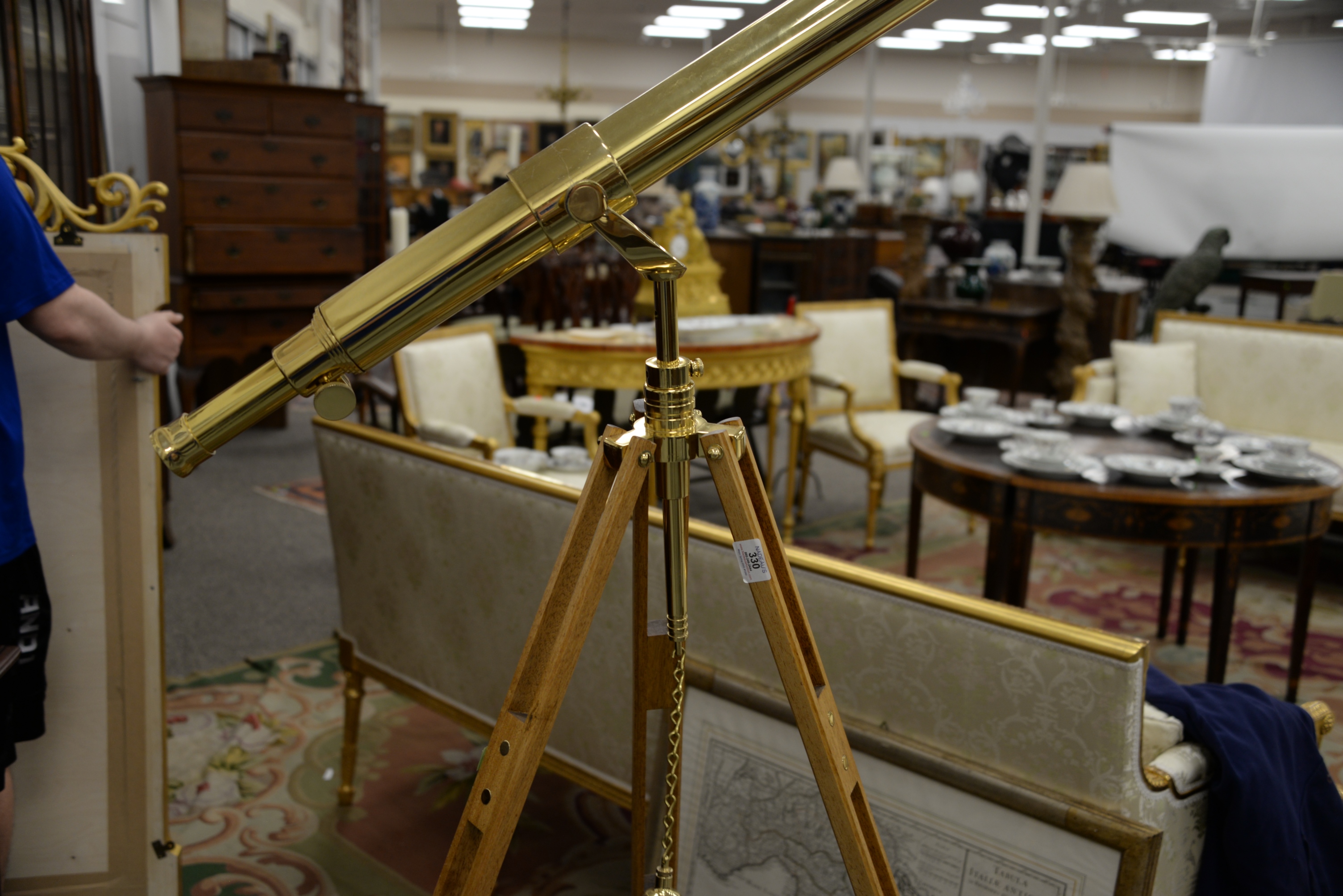 The Glass Eye Brass Telescope, on tripod base, height of tripod 55 inches. Provenance: A Private Connecticut Shoreline Collection