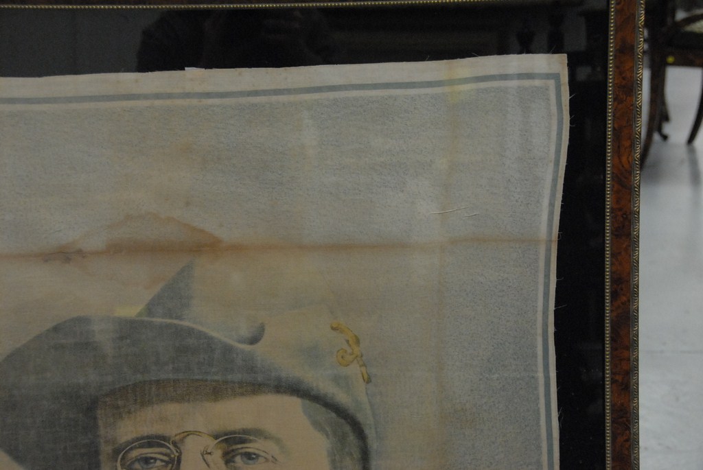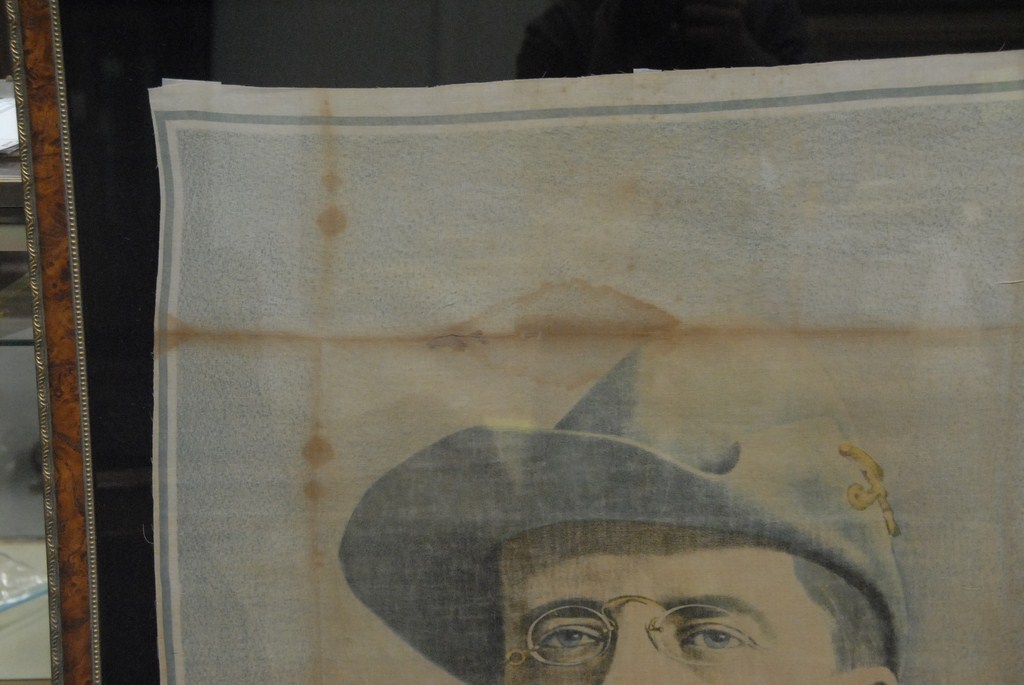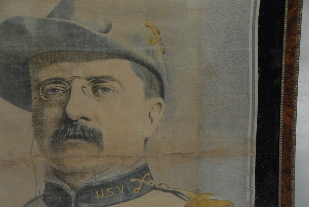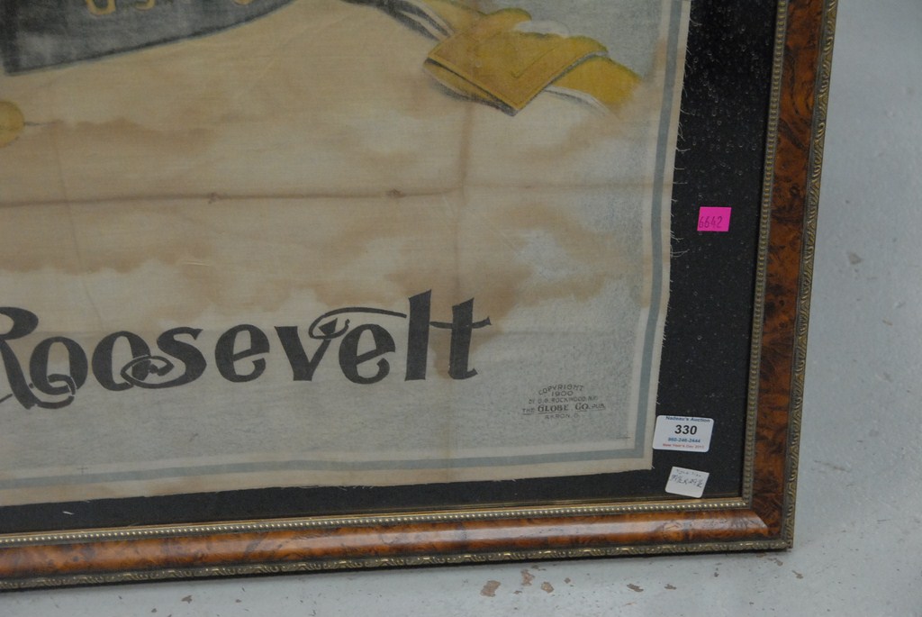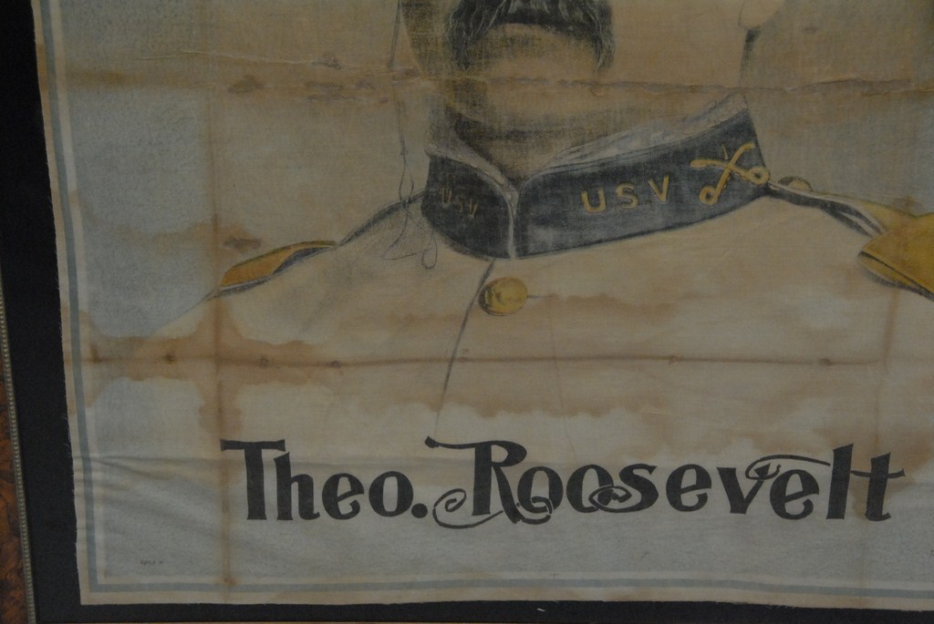 Lot 330: Theodore Roosevelt Cloth banner of him in Rough Rider uniform. marked lower right Copyright 1900 by G. G. Rockwood, NY…