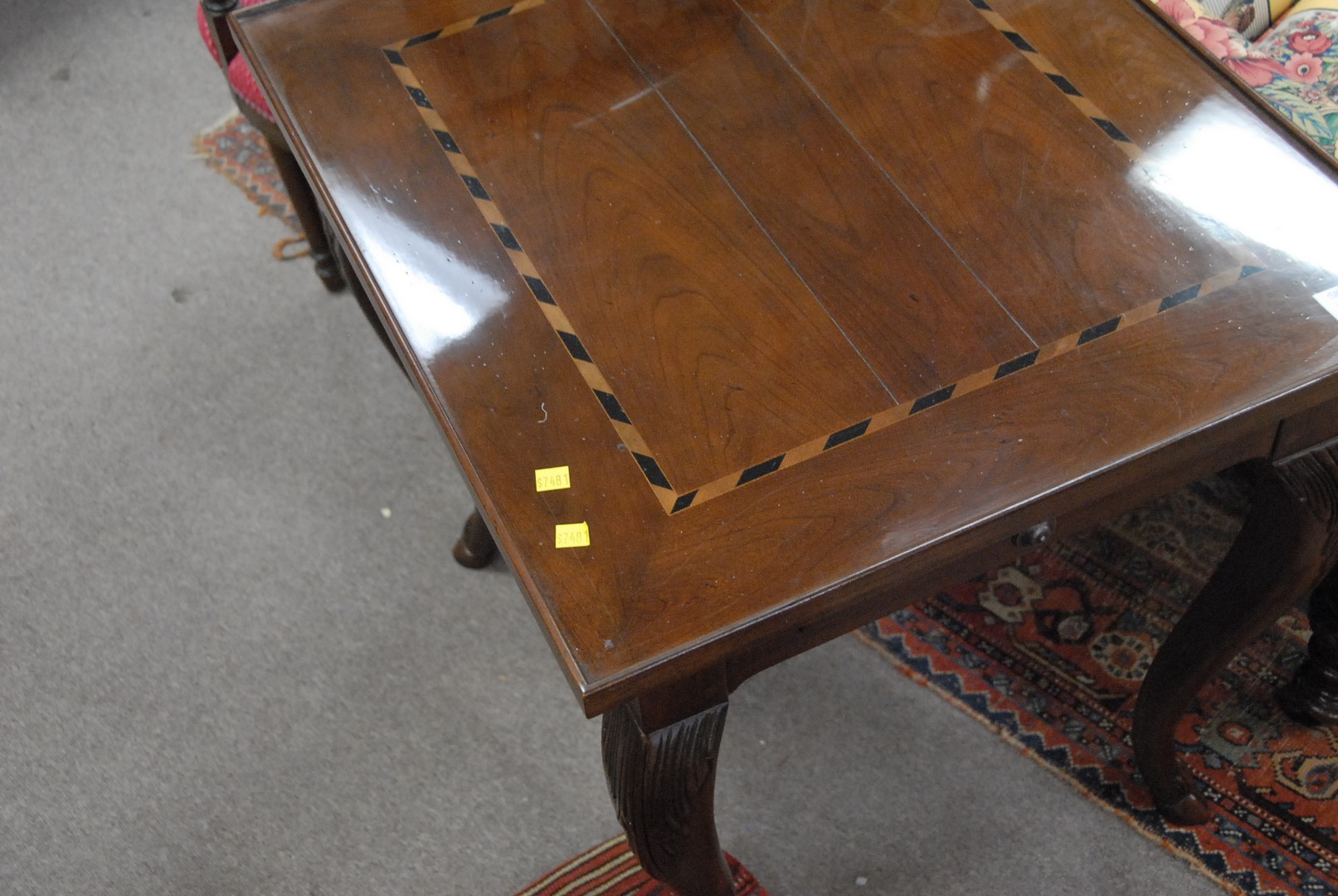 Two Baker tables with inlaid tops. ht. 26 1/2 both