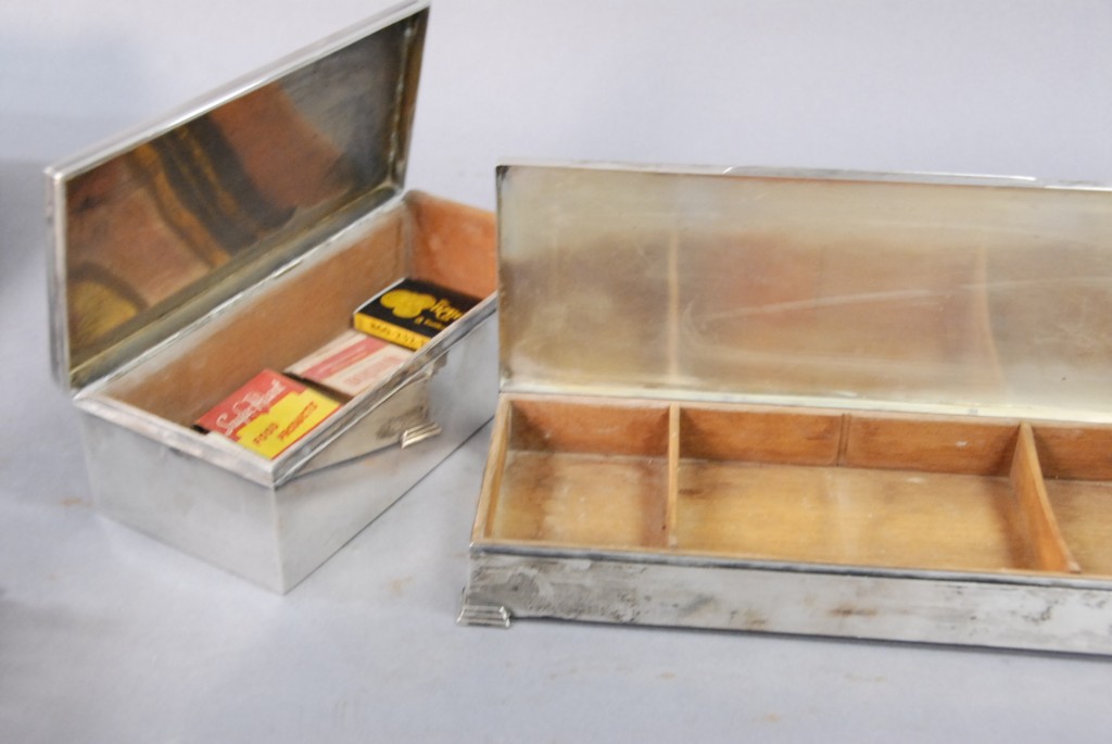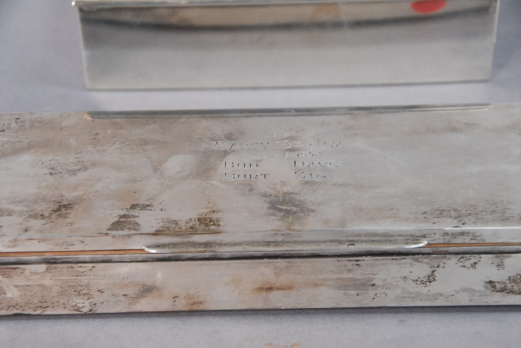 Two sterling silver rectangular boxes with wood interiors. Approximately 28 troy oz.