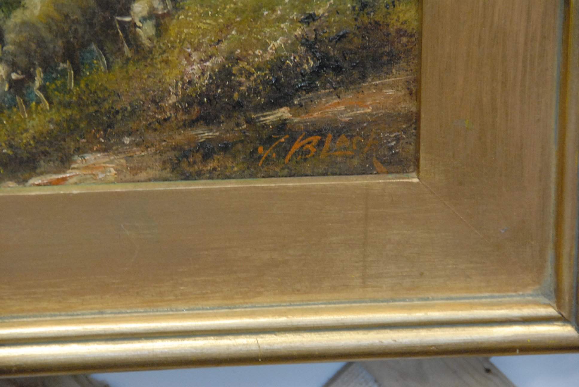 Oil on canvas of sheep, signed lower right, Black