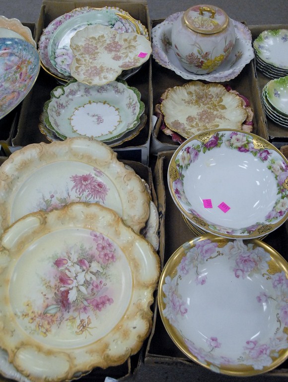 Four box lots of various bowls and plates, mostly hand painted, German and French.