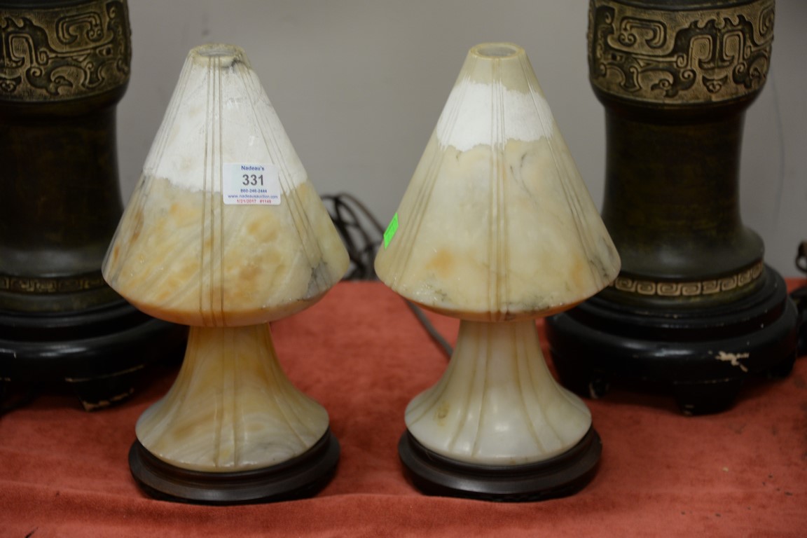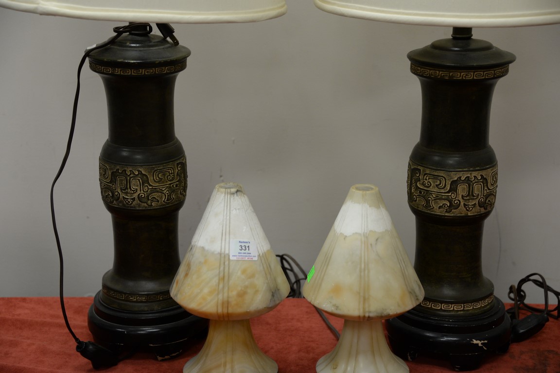 Lot 331: Four lamps to include pair of Oriental style lamps ht. 37in. and a pair of small alabaster boudoir lamps ht. 12in..