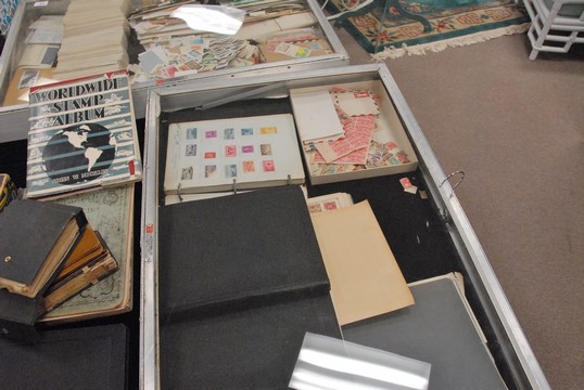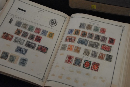Fourteen stamp album, several with American stamps.