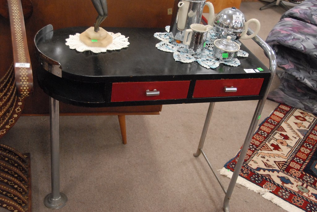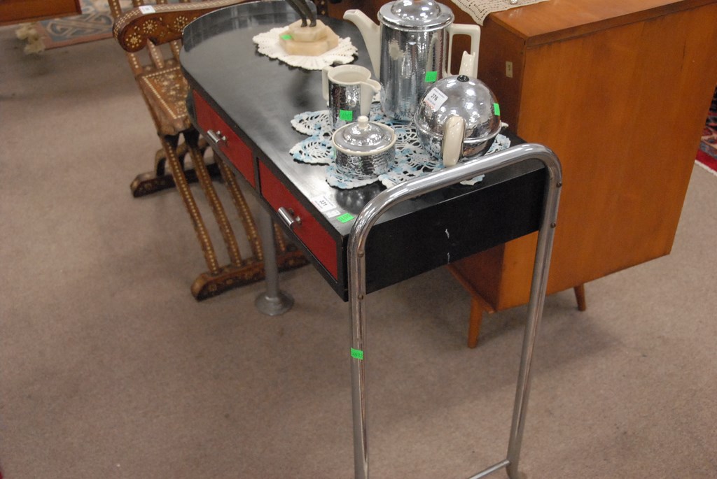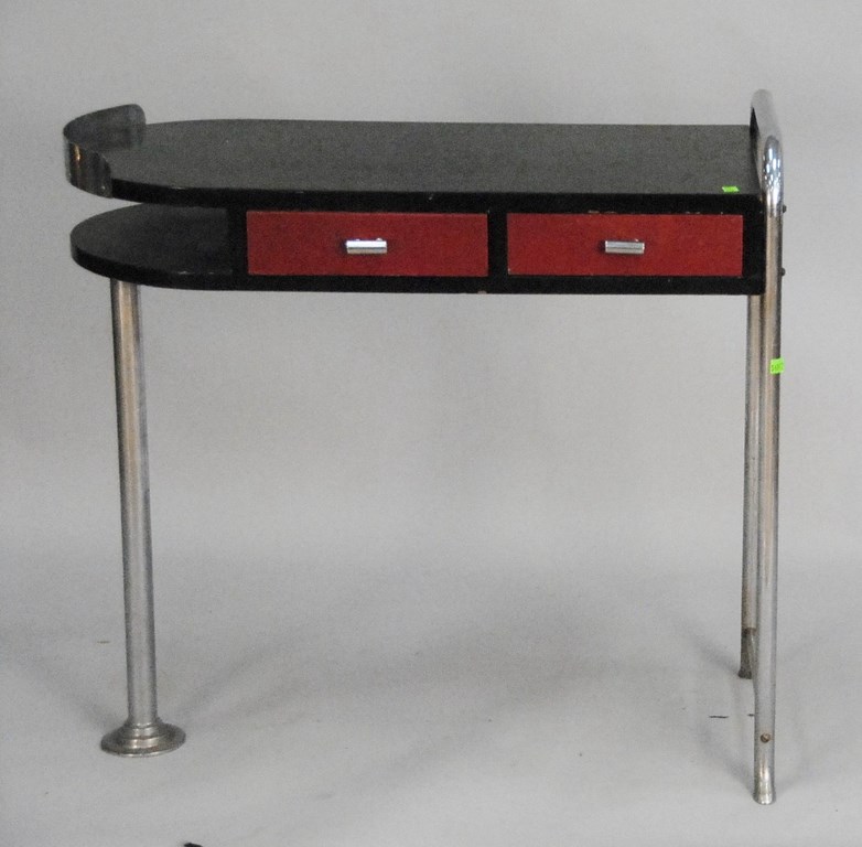 Kem Weber Art Deco stand / console, red, black, and chrome, lg. 33in. ht. 30in.