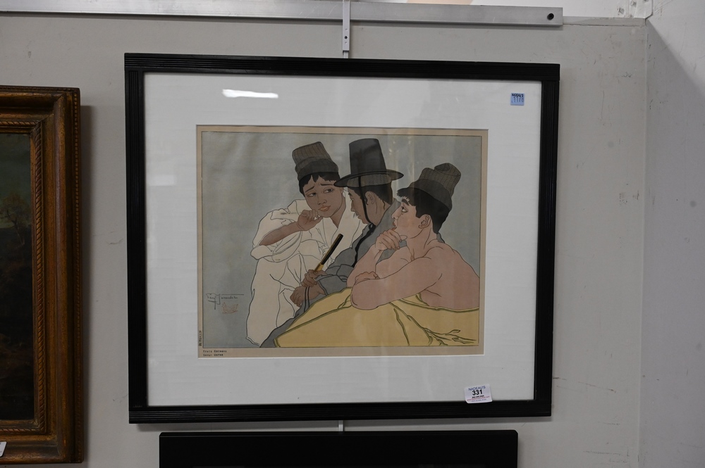 Lot 331: Paul Jacoulet (1902 – 1960) Woodblock Print, Trois Coreens, Seoul, Coree, pencil signed lower left, 12 3/4″ x 16″.