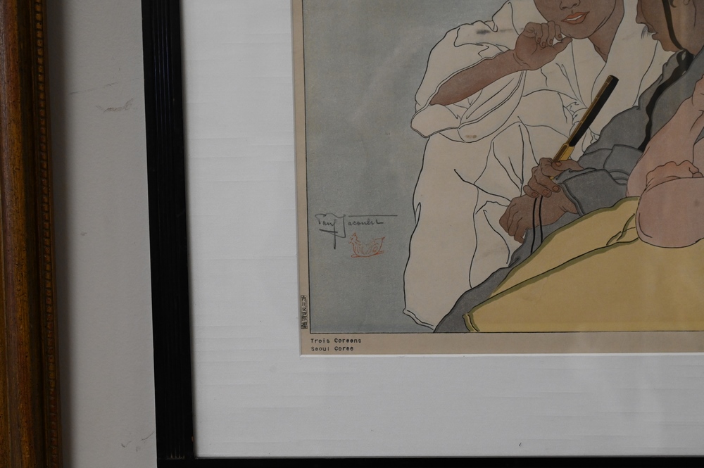 Paul Jacoulet (1902 – 1960) Woodblock Print, Trois Coreens, Seoul, Coree, pencil signed lower left, 12 3/4″ x 16″.