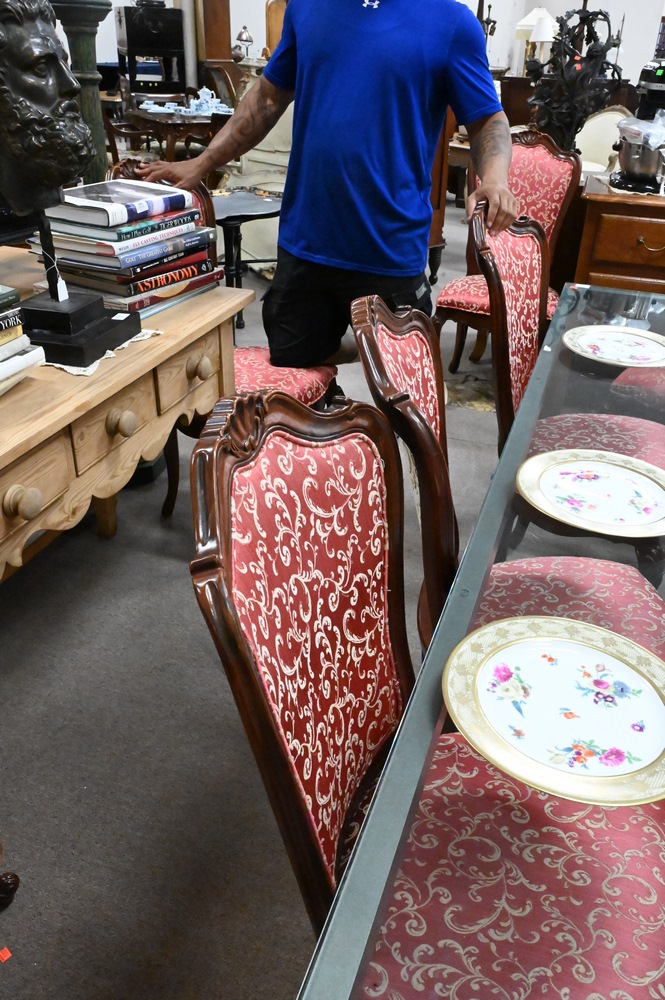 Set of 14 Louis XV Style Side Chairs, in custom silk upholstery, height 40 inches.