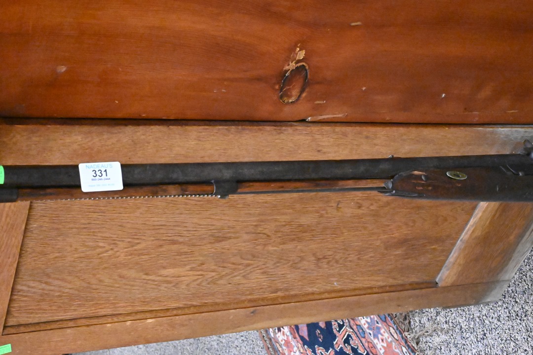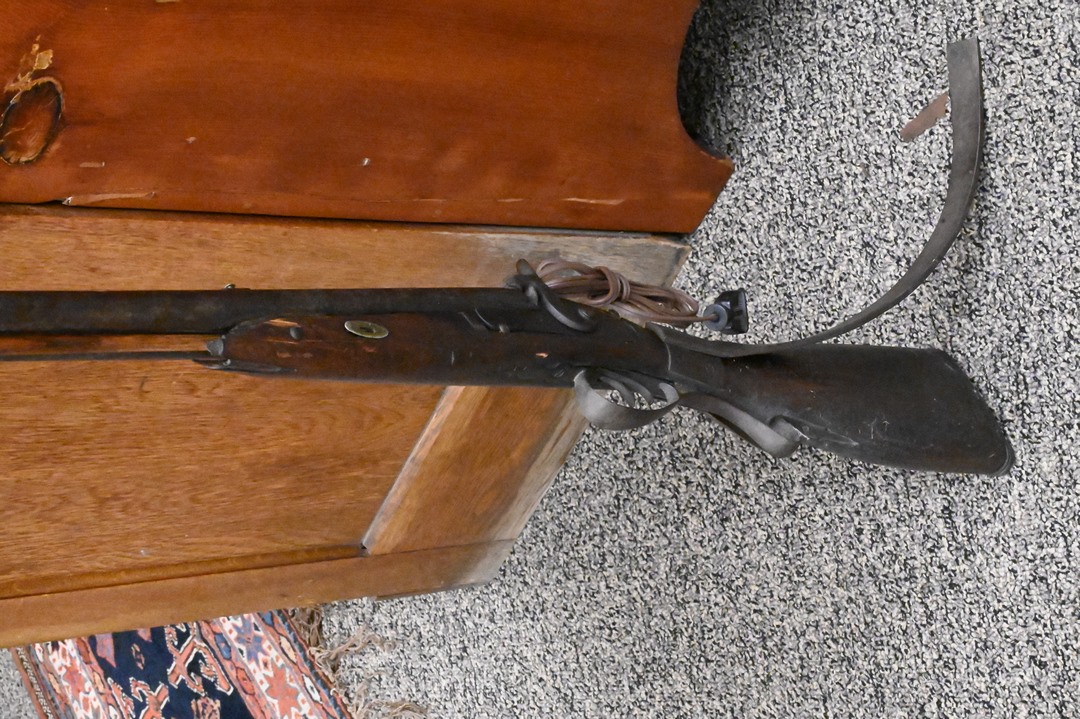 Shot Gun Floor Lamp, having pump double barrel, outside hammers, 57 inches. Provenance: Estate of Peter Tillou, Litchfield, Connecticut.
