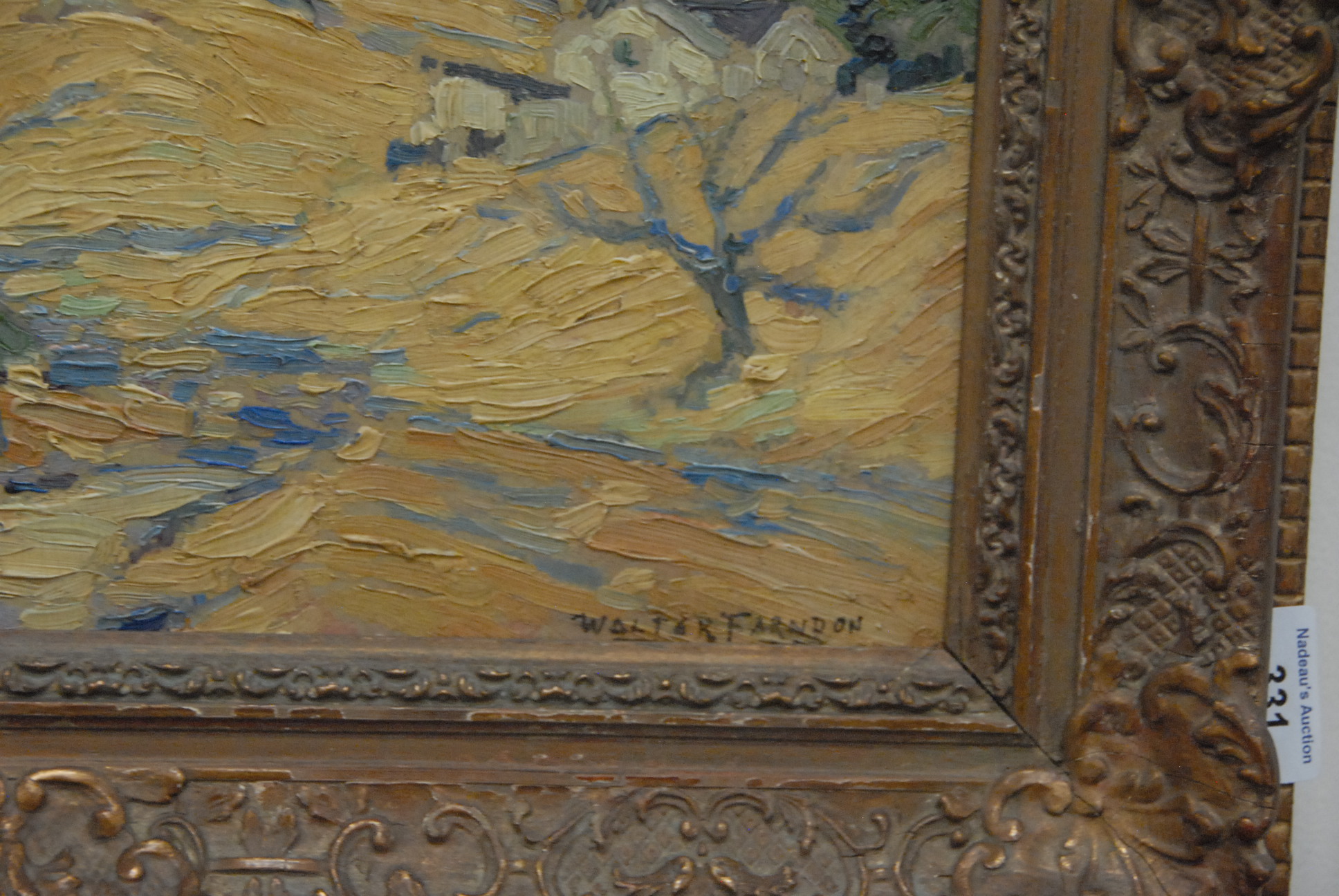 Lot 331: Walter Farndon 1876-1964 AUTUMN LANDSCAPE WITH HOUSE AMID ROLLING HILLS oil on board signed lower left Walter Farndon 12 x 16