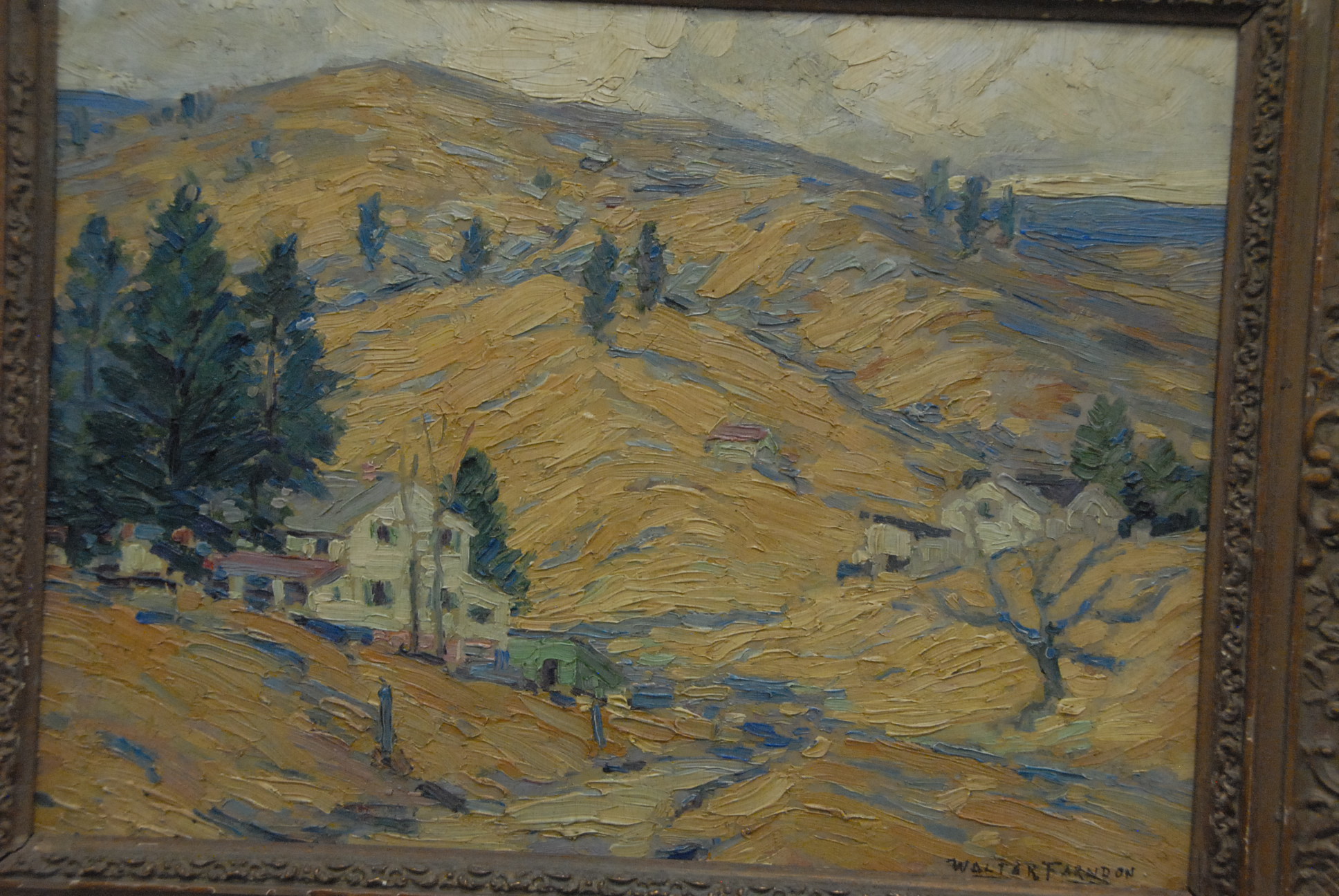 Walter Farndon 1876-1964 AUTUMN LANDSCAPE WITH HOUSE AMID ROLLING HILLS oil on board signed lower left Walter Farndon 12 x 16