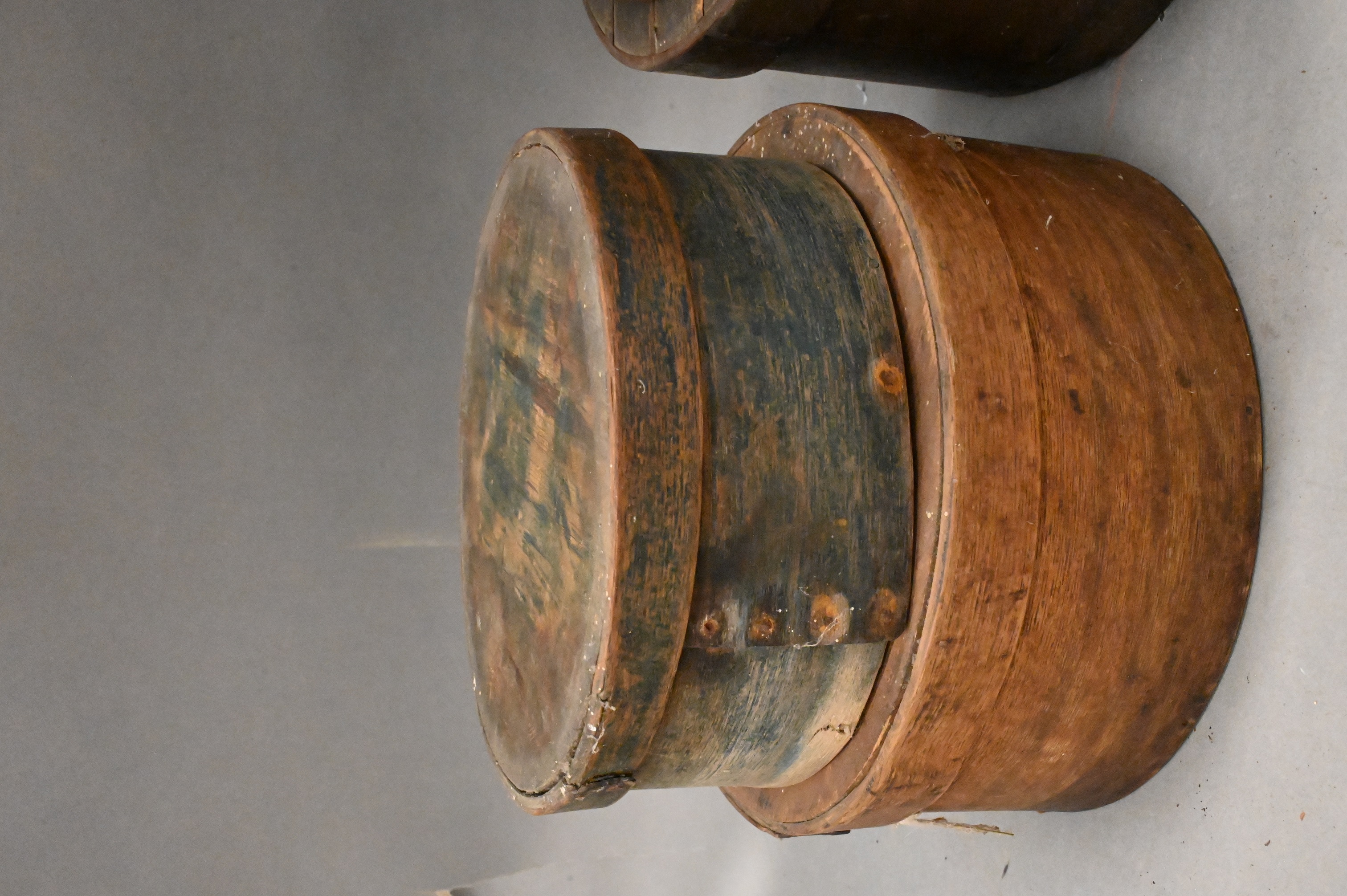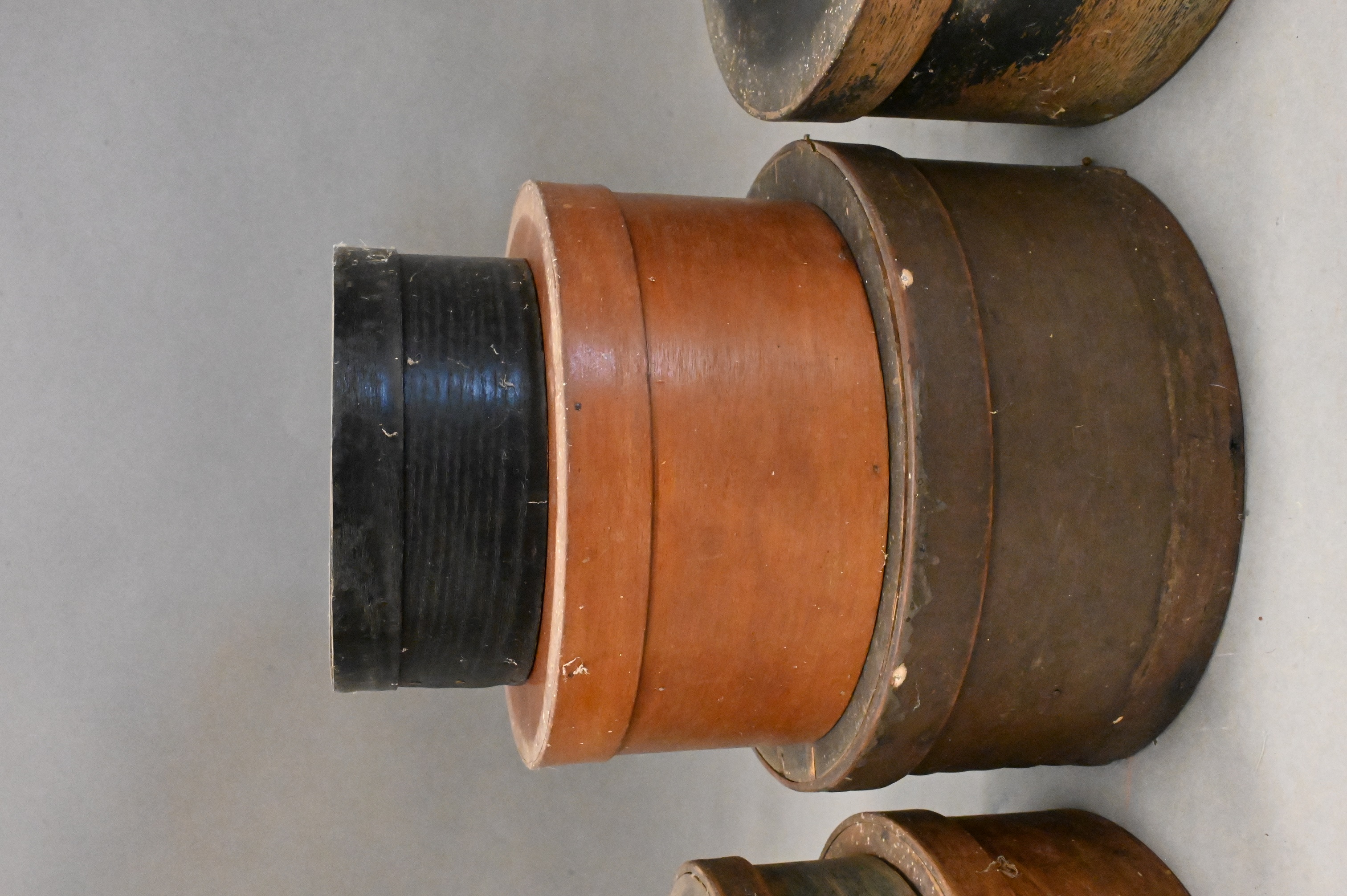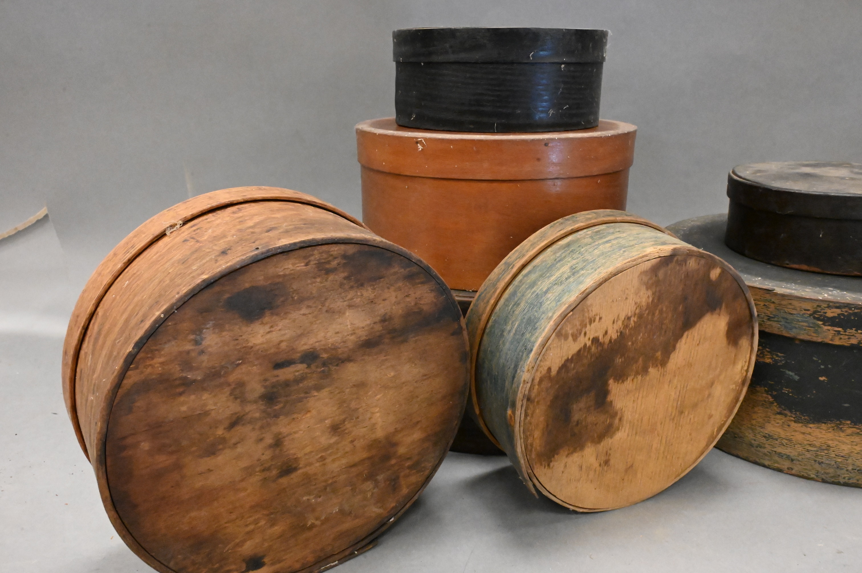 to include seven graduated round wood covered boxes