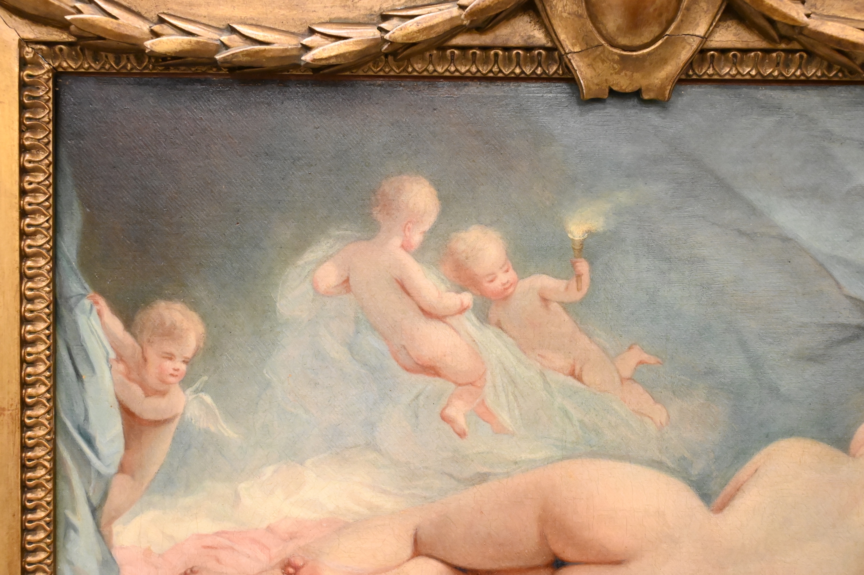 Condition: relined canvas, subtle craquelure throughout, some paint loss in the feet and borders