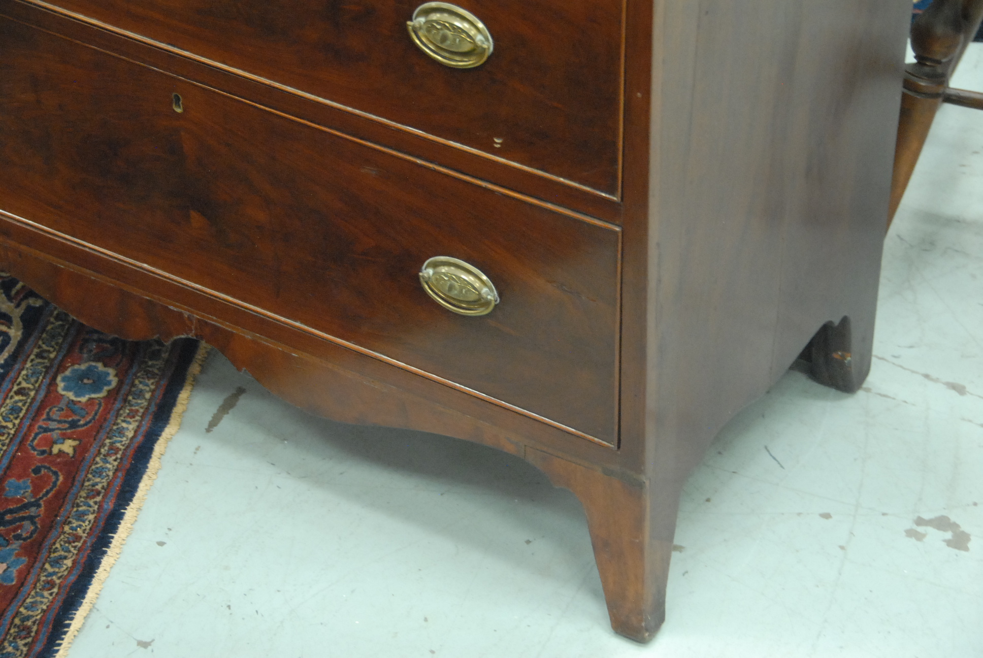 Federal mahogany chest with two short drawers over three long drawers with scalloped apron set on French feet, circa 1790-1810. ht. 41 in. wd. 38 in. dp. 18 in. Provenance: Property from The Estate of W. Scott Van Alstyne of Essex, Connecticut.