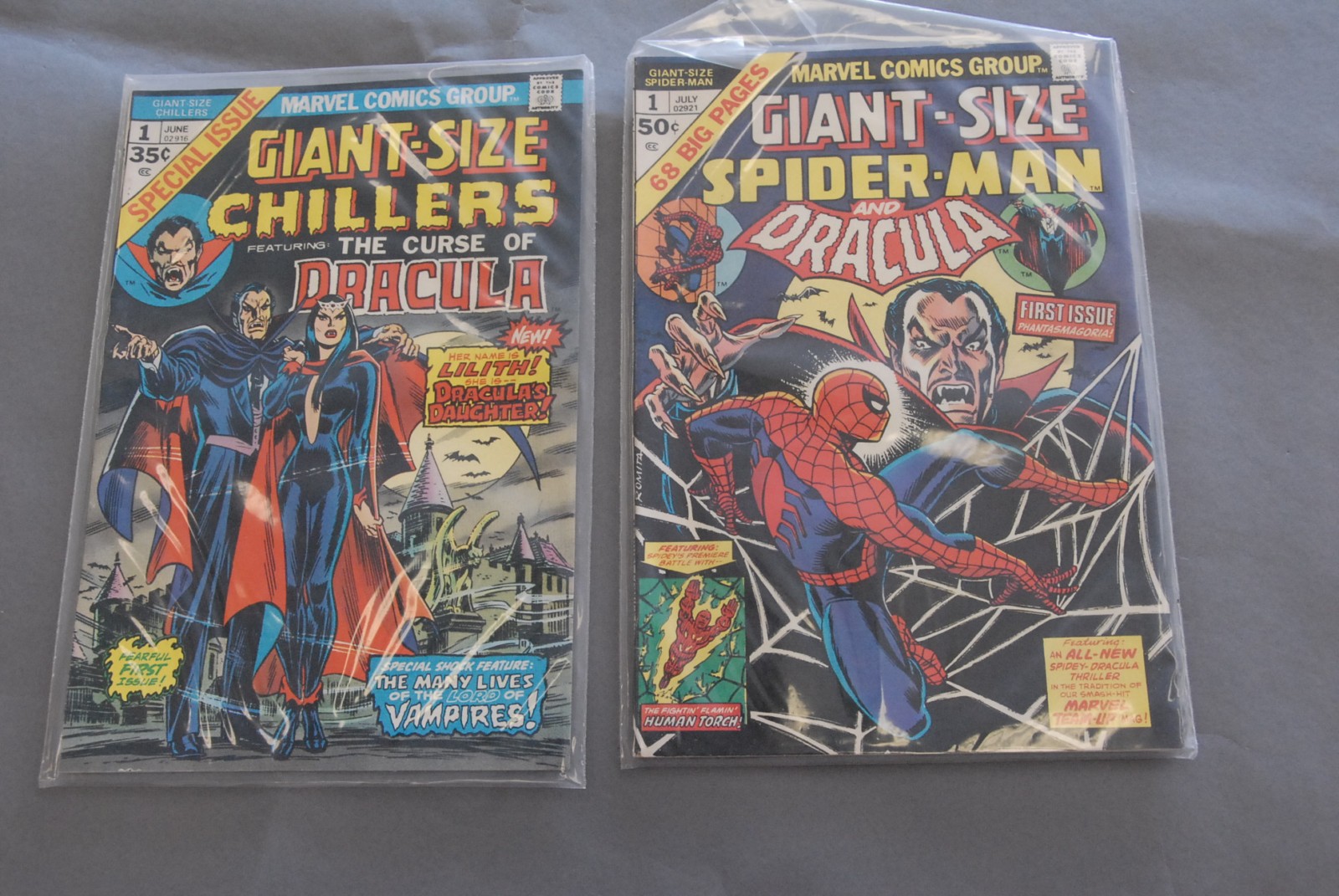 Five Dracula and Spiderman Marvel comics